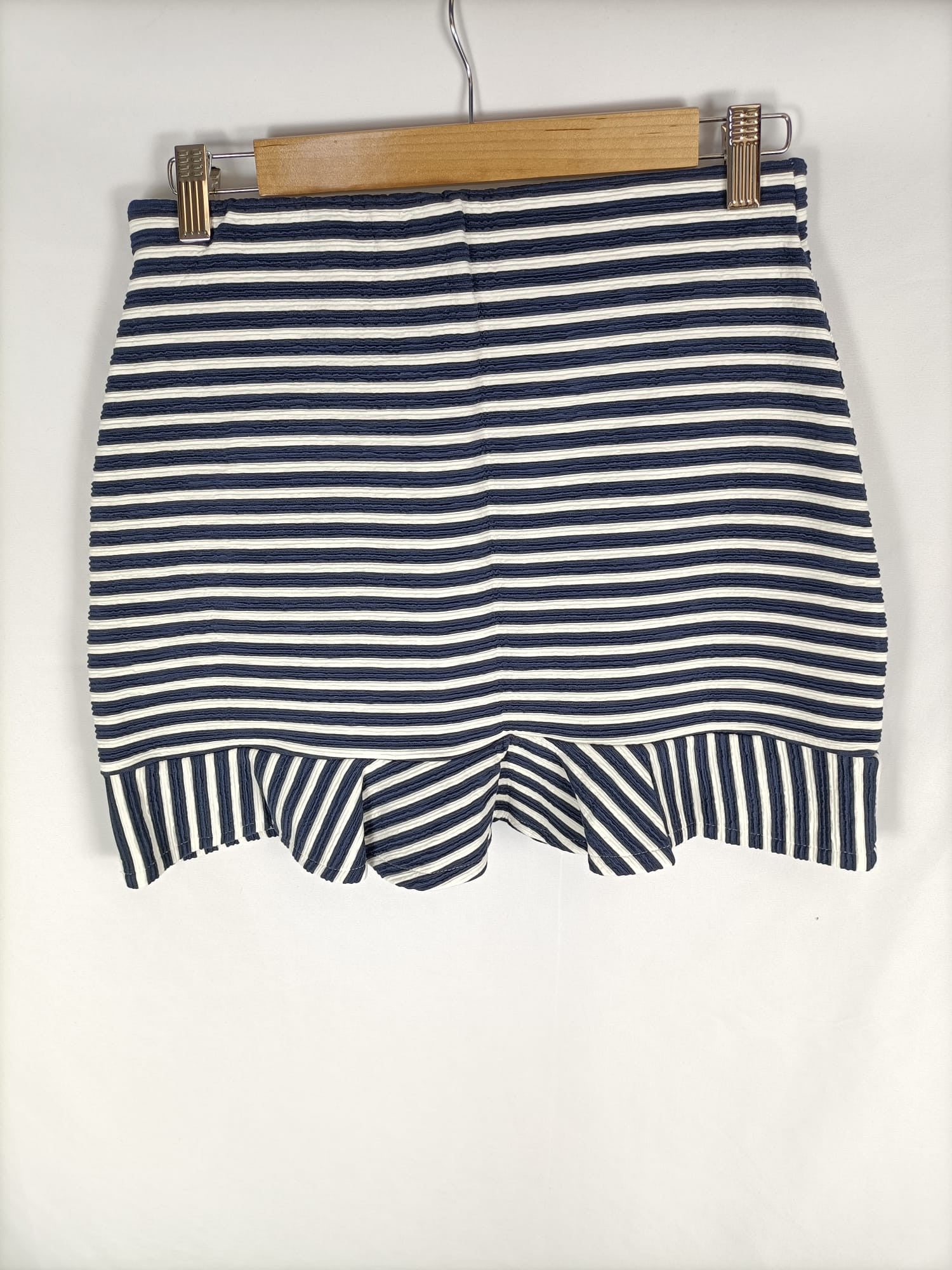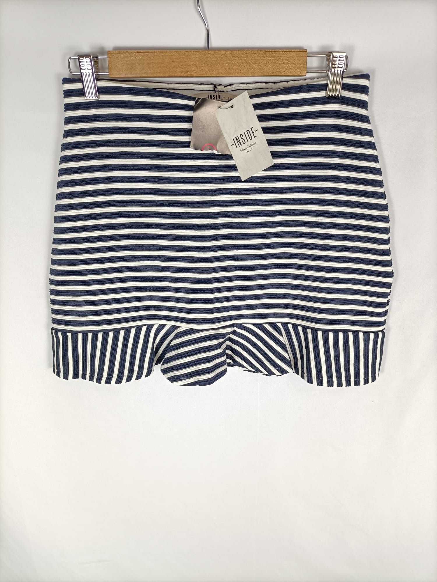 Inside.s. NUEVA CON ETIQUETA. Falda mini de rayas marines con tejido con textura y mini volante. Elástica. Largo 41 cm