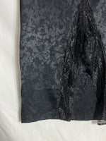 Falda midi negra estampada con apertura delantera y encaje