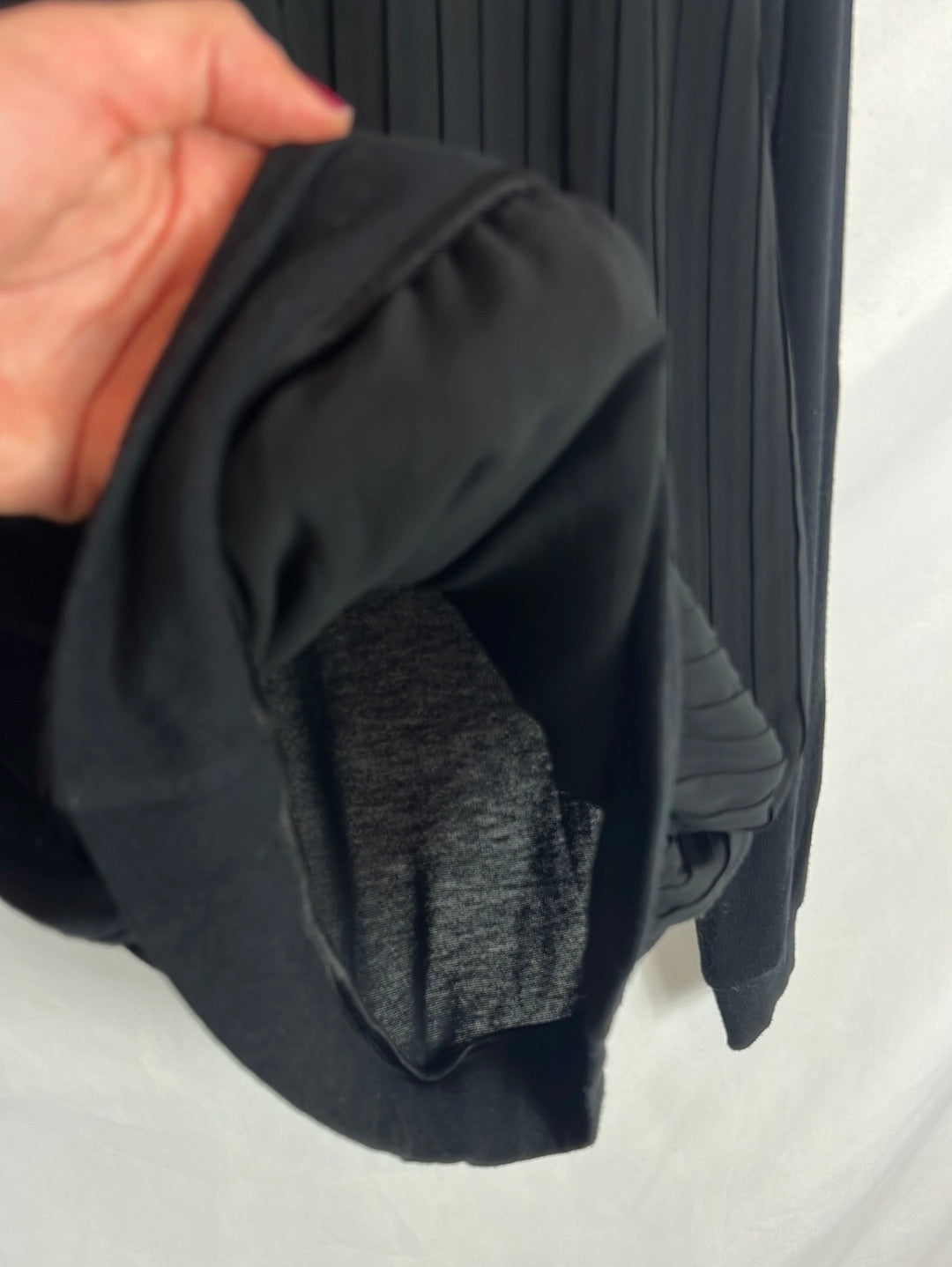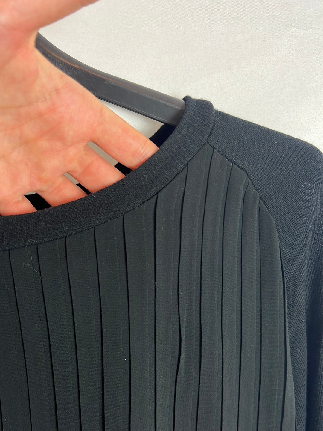 jersey/blusa negra de tejido delantero plisado y semitransparente.