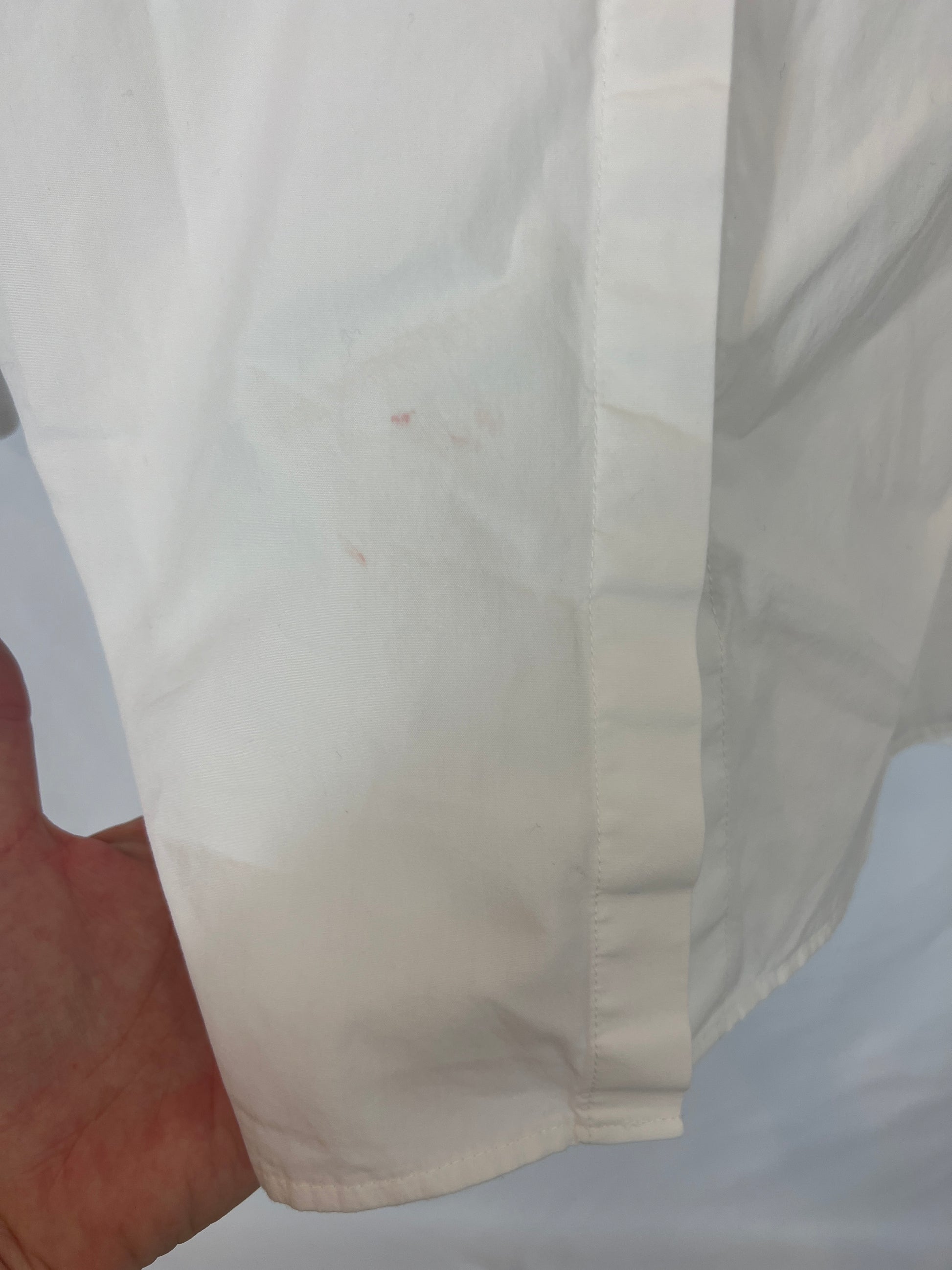 Camisa blanca algodón estilo Oxford. Tara: mini mancha parte inferior (foto)