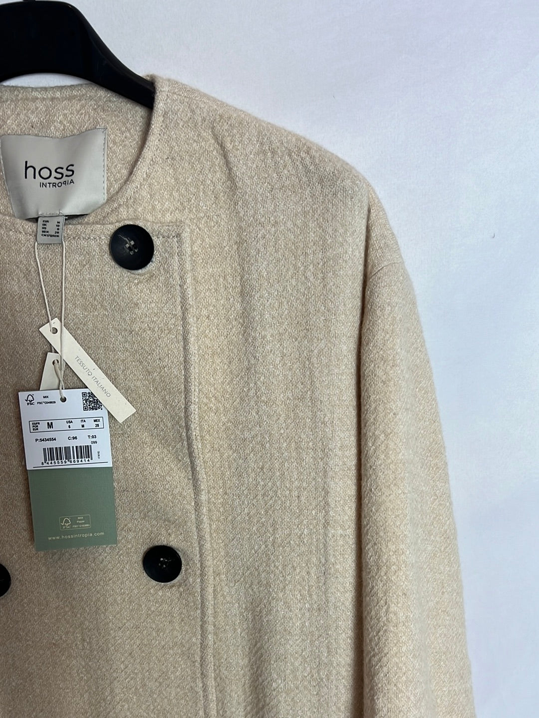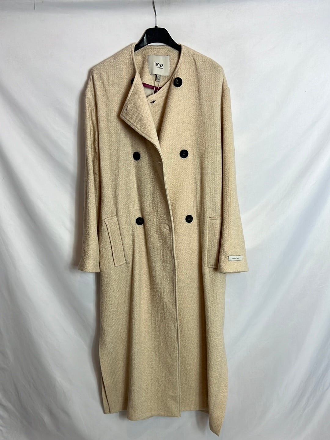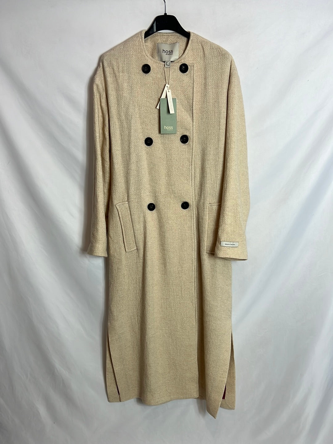 NUEVO CON ETIQUETA. abrigo cruzado beige. Largo 122cm