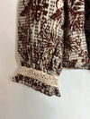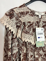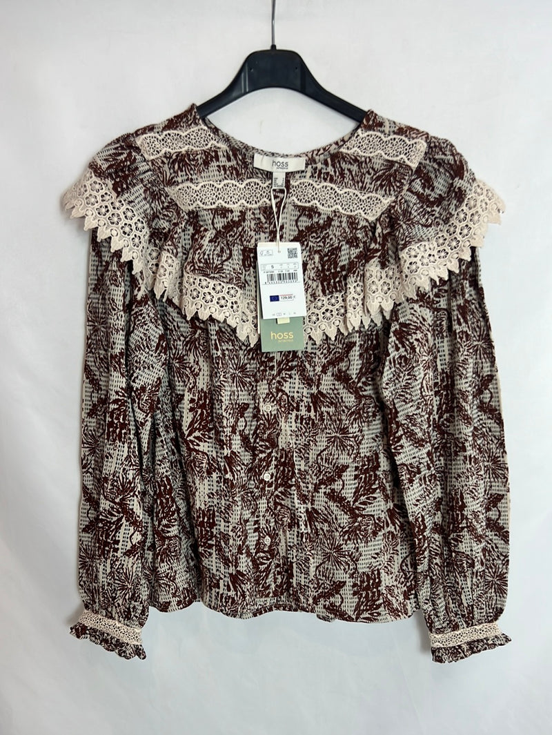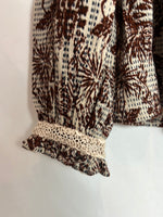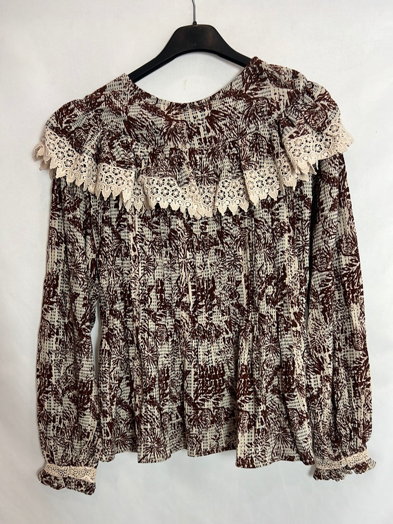 NUEVO CON ETIQUETA. Blusa estampada plisada con encajes
