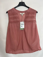 INTROPIA. Blusa sin mangas rosa encajes. T S