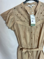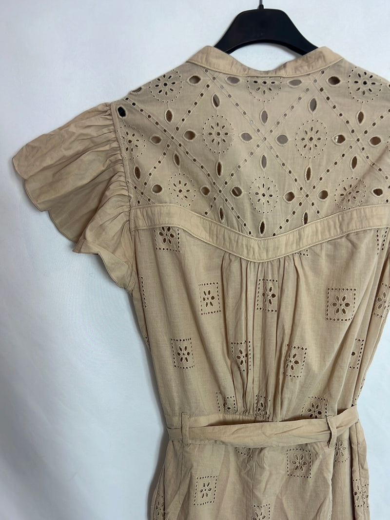 NUEVO CON ETIQUETA. Mono largo beige troquelado