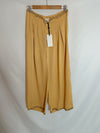 NUEVO CON ETIQUETA. Pantalón culotte mostaza con abalorios. fluido.