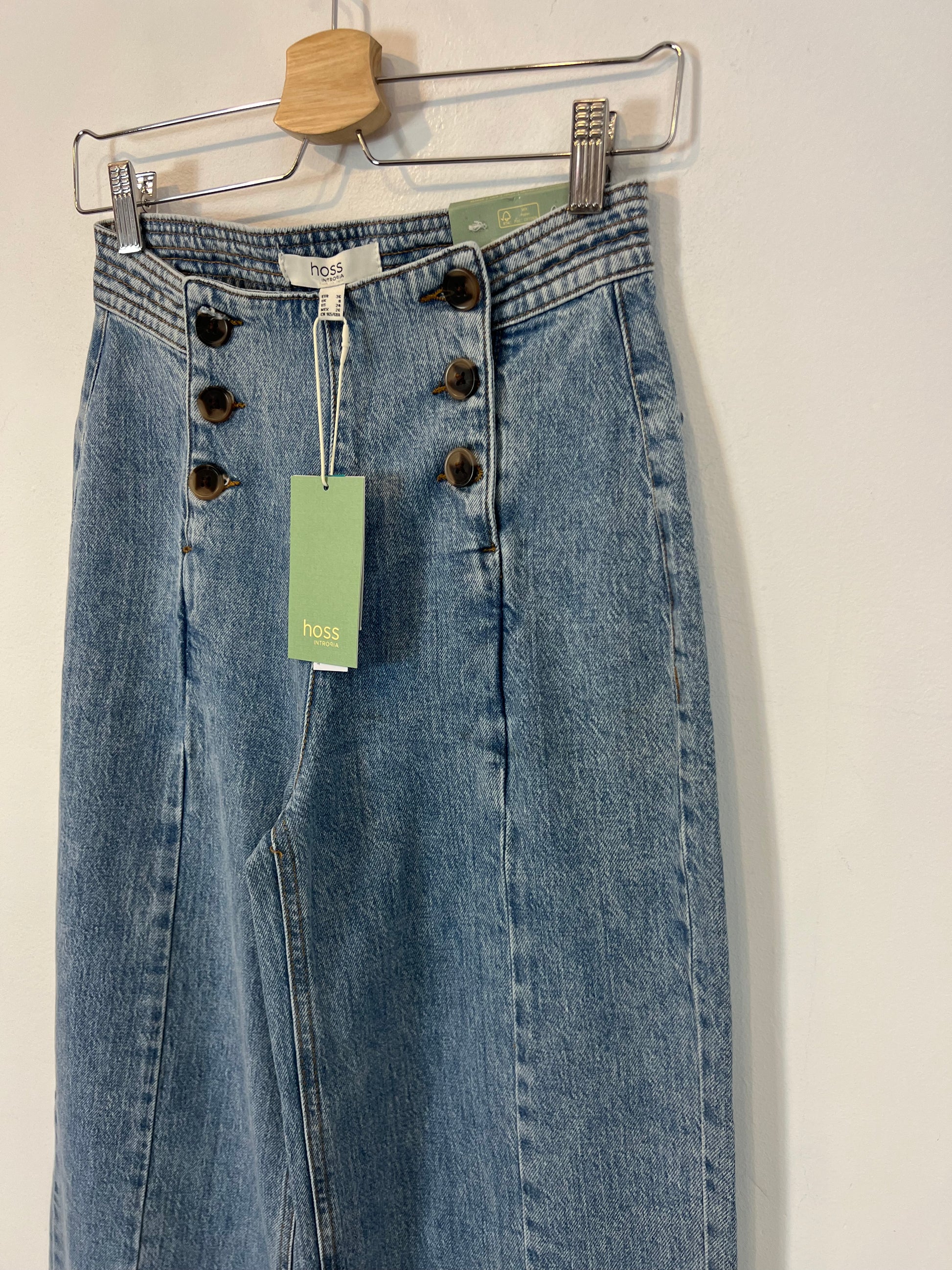 NUEVO CON ETIQUETA. Pantalón vaquero ancho con botones. no elástico. cintura 354 cm largo114 cm