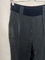 Pantalón pinzas doble textura negro: cintura en terciopelo y resto tornasolado