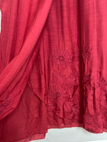 Vestido midi burdeos rojizo bordados en escote y mangas