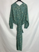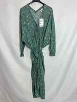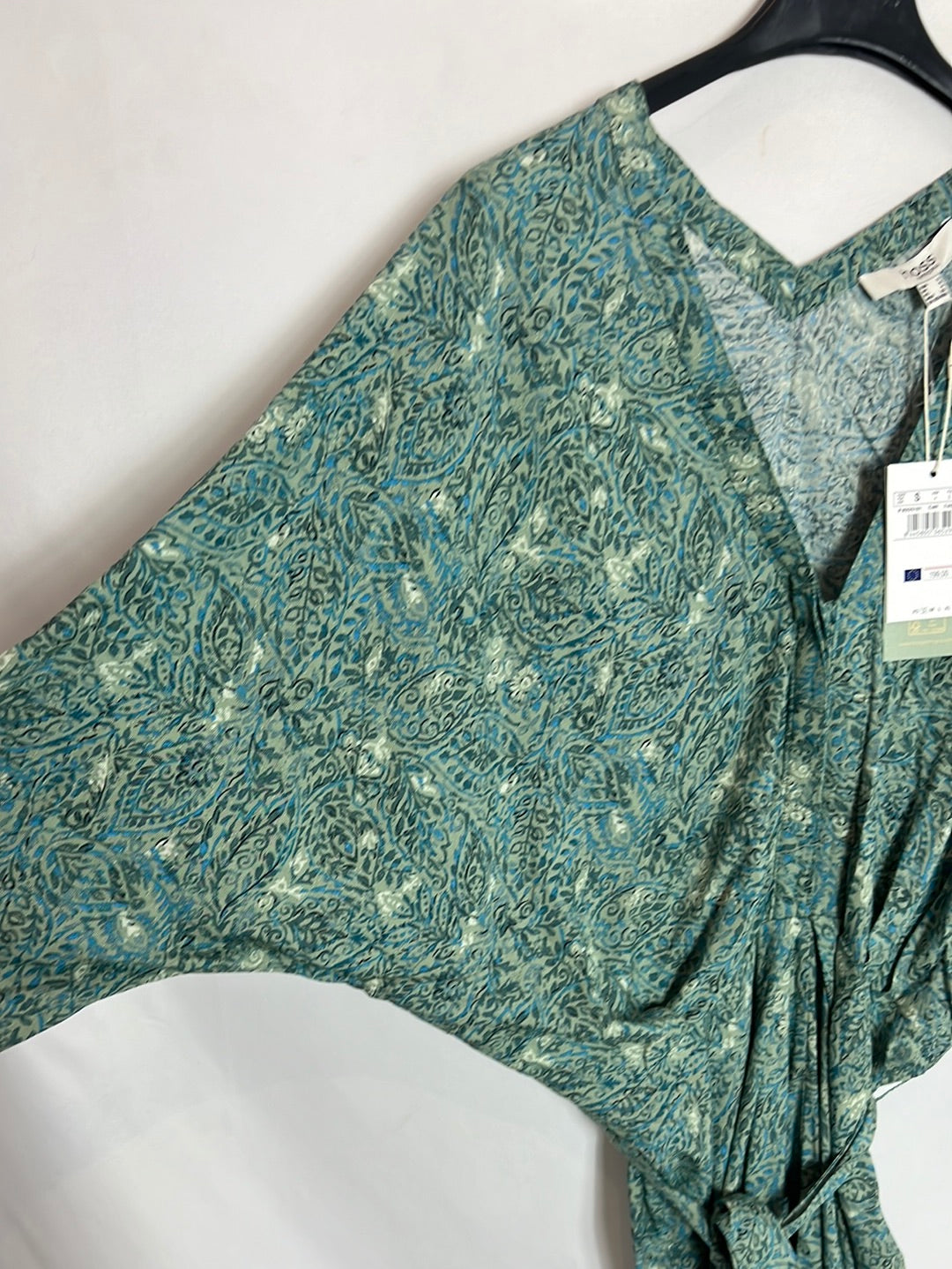 INTROPIA. Vestido midi fruncidos azules y verdes. T S