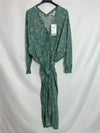 NUEVO CON ETIQUETA. Vestido midi fruncidos azules y verdes. Cremallera lateral.Largo 120cm