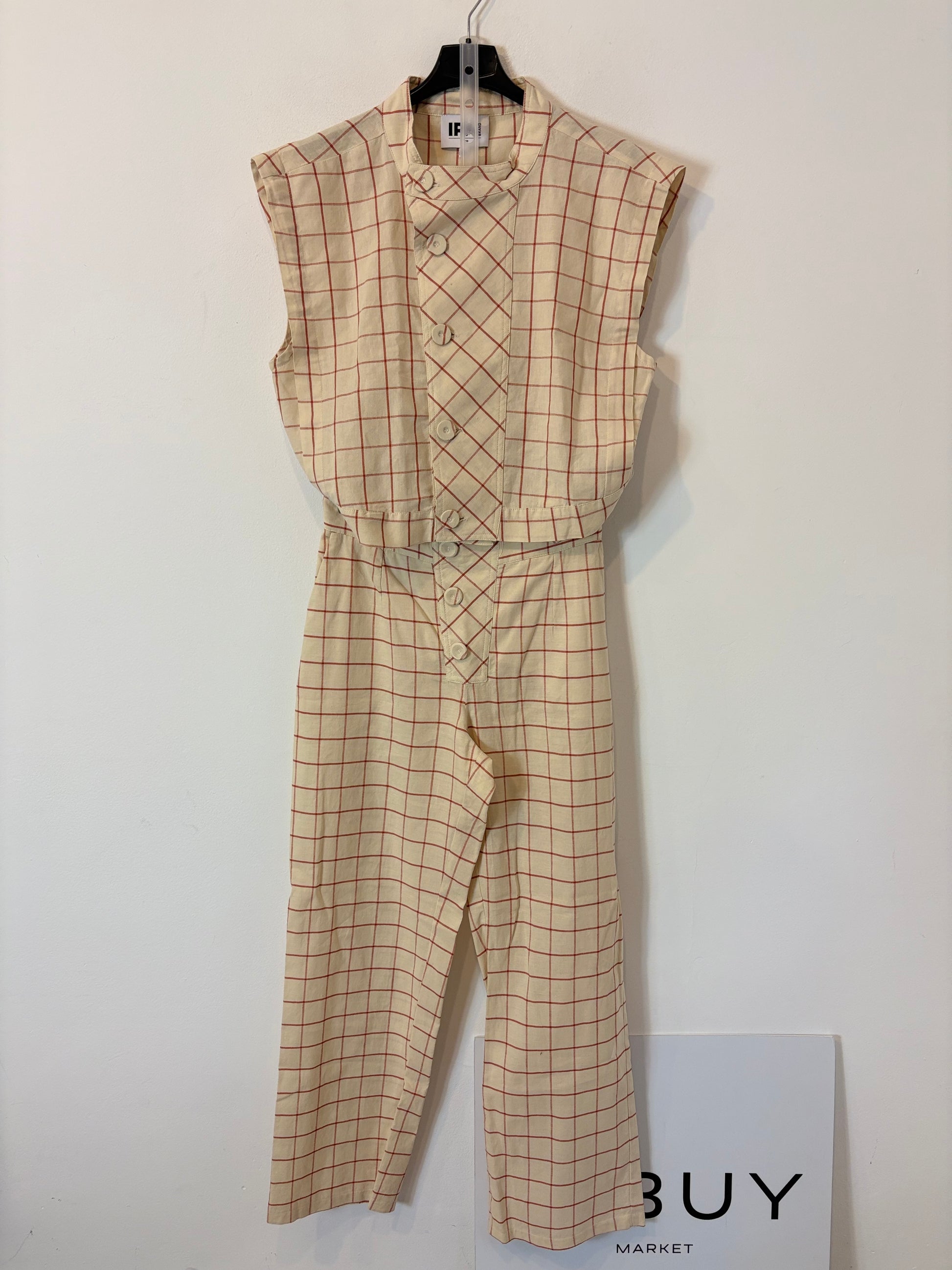 IPA. Conjunto pantalón y chaleco cuadros. T XS