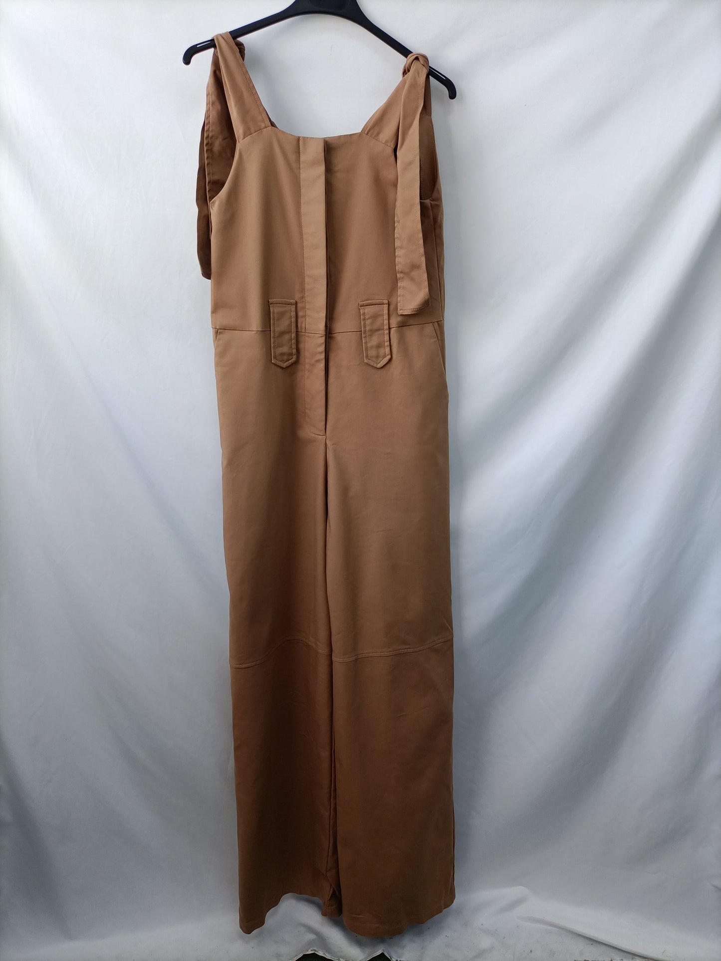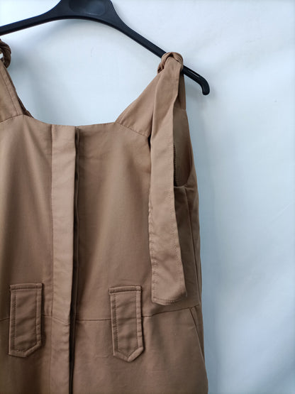 Peto beige palazzo abotonado por delante y con los tirantes ajustables. De sisa a sisa 39 cm largo 160 cm