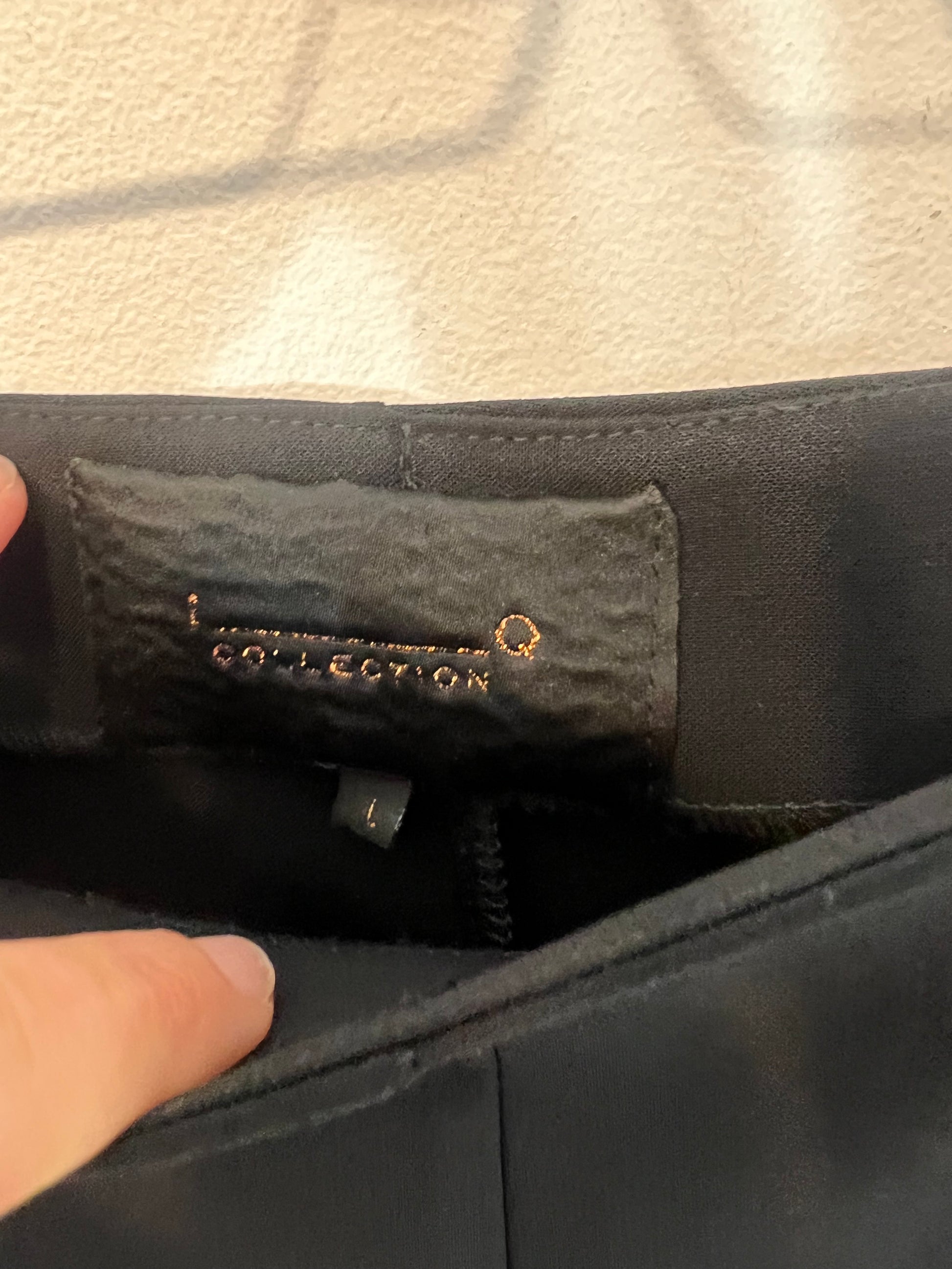 Pantalón negro entallado con cremallera lateral. Look con blazer cintura 40cm, largo 96cm