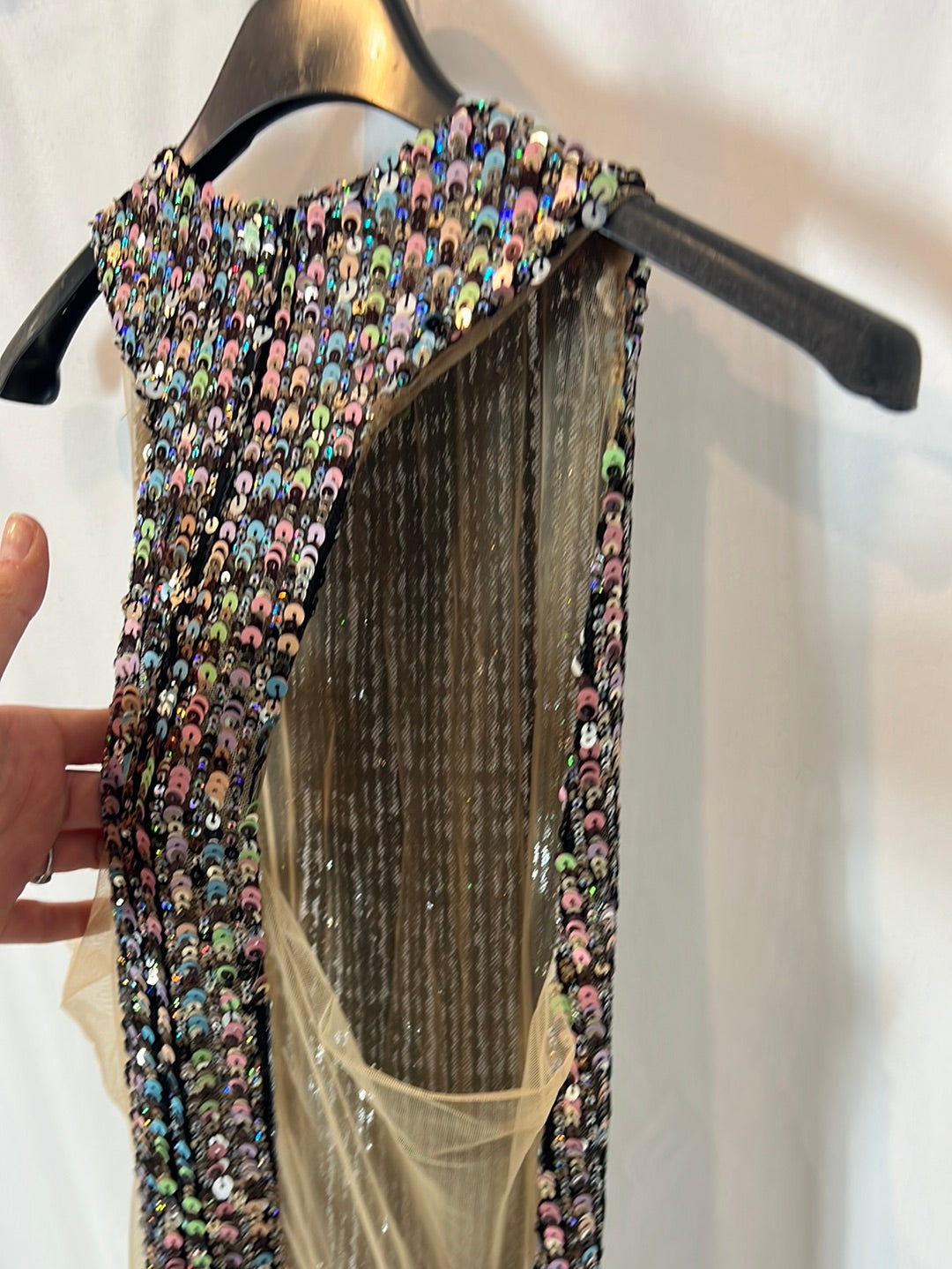 NUEVO CON ETIQUETA. Vestido largo con lentejuelas y detalles tull. Modelo Talia . Cintura 33cm, largo 144cm