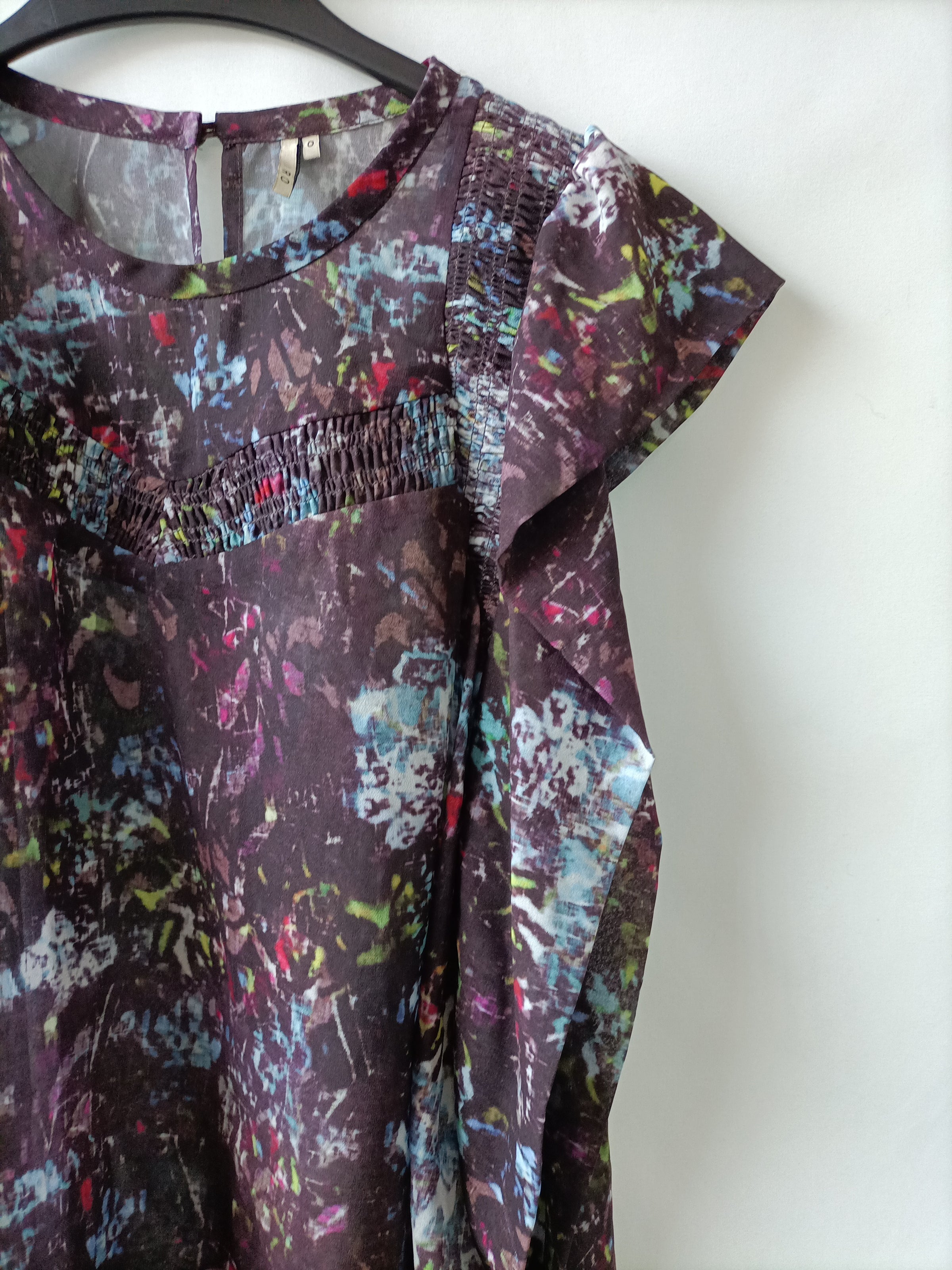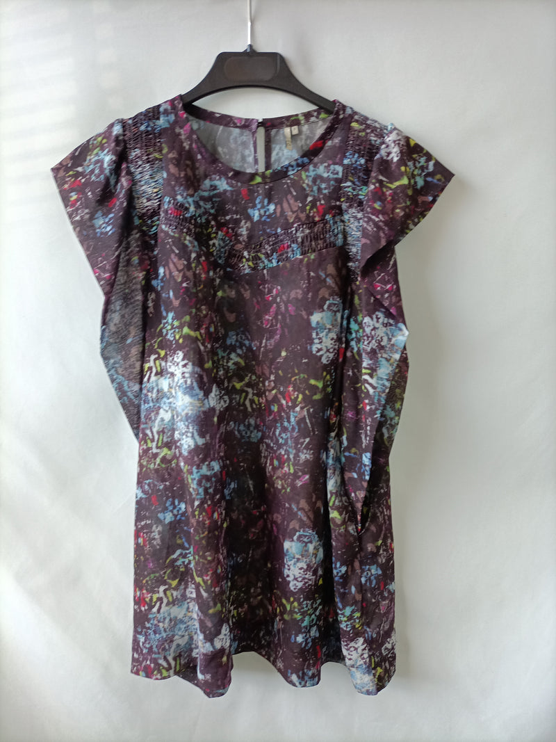 Camisa estilo tie die con volantes en las mangas. De sisa a sisa 51 cm largo 65 cm
