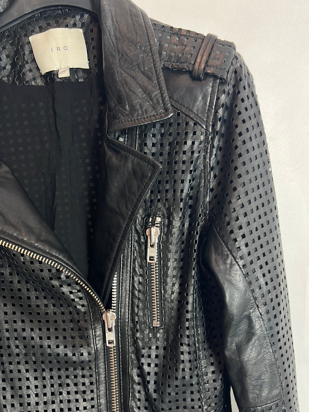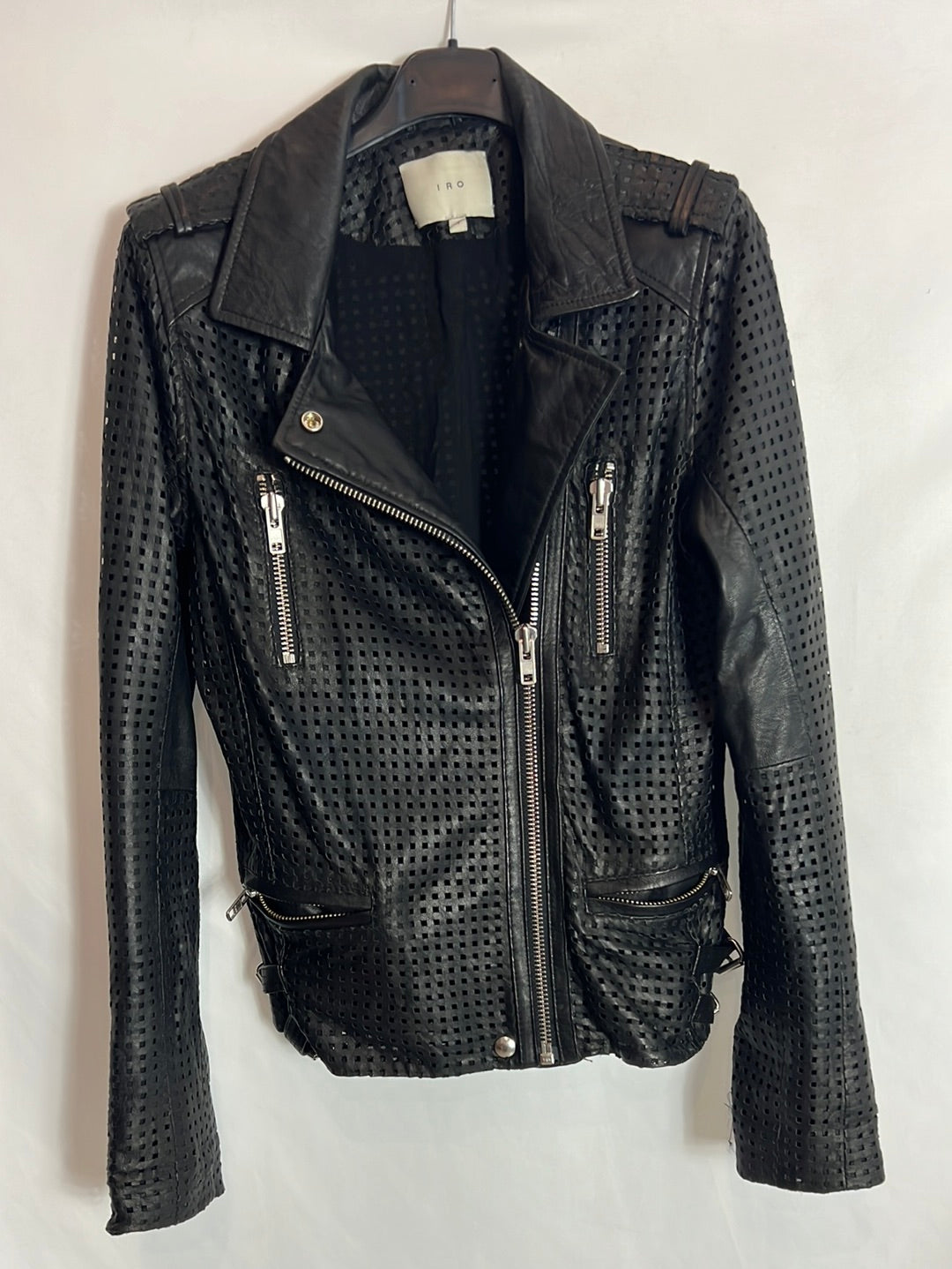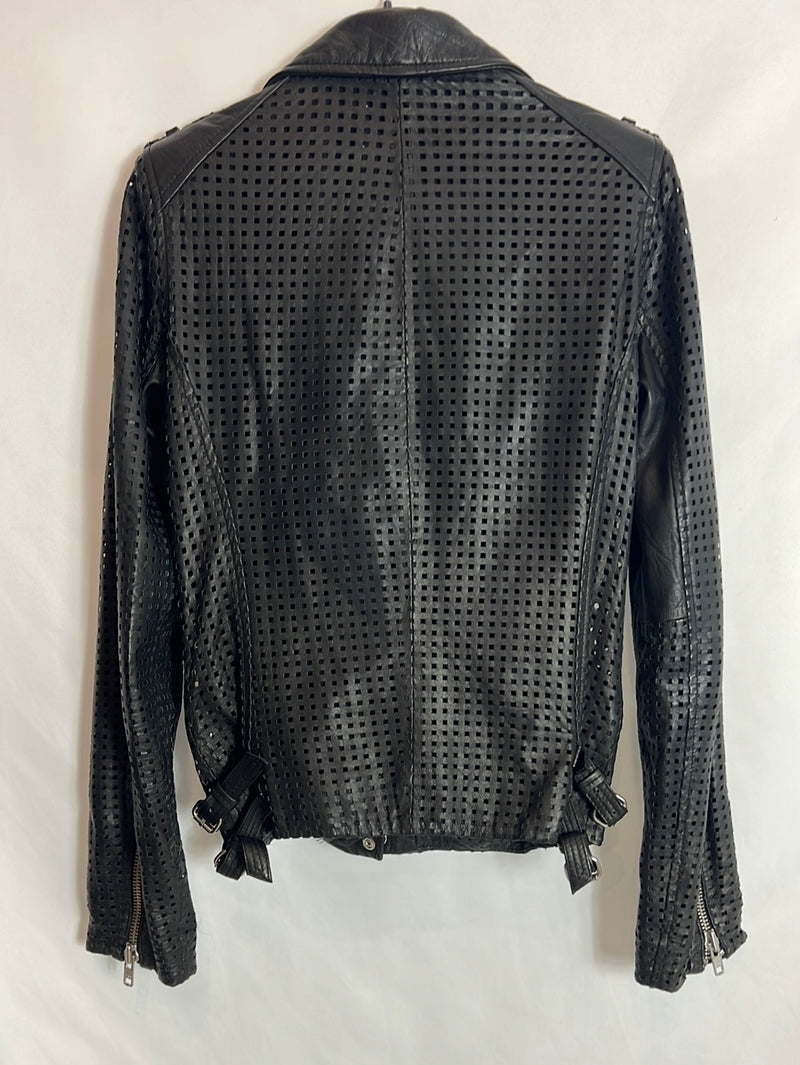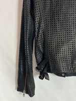 Cazadora 100% piel troquelada detalle bolsillos y cremalleras. Largo 58cm. En buen estado, uso moderado