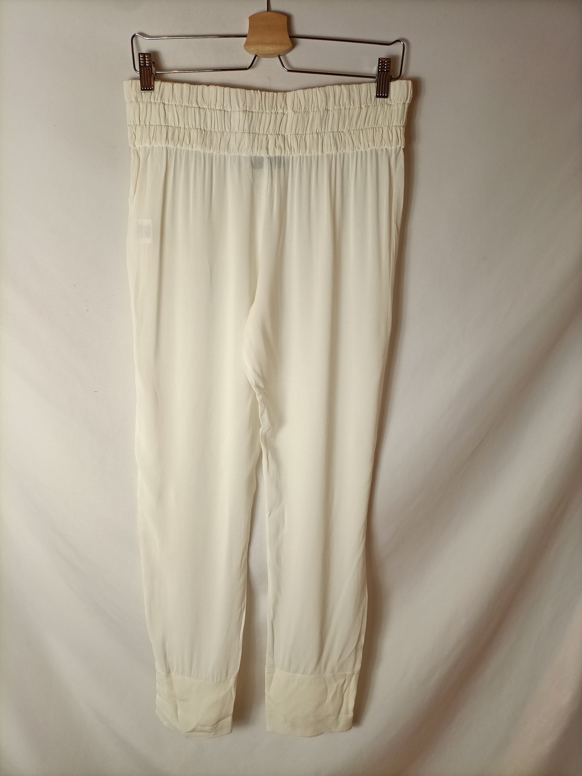 IRO. Pantalón fluido semitransparente blanco roto. T 38