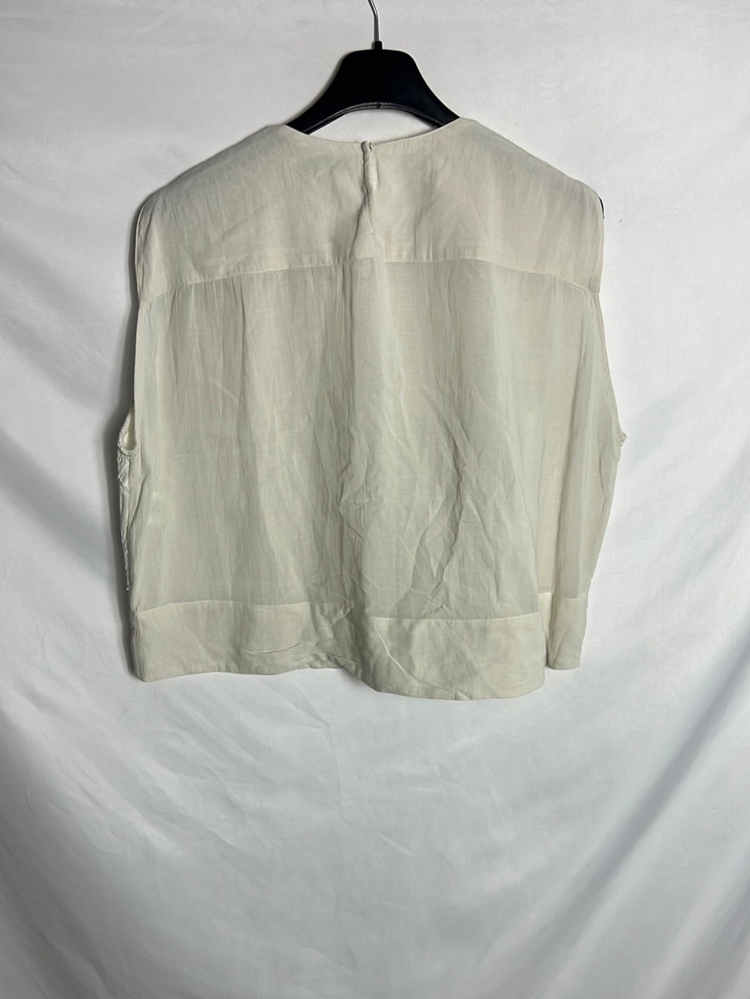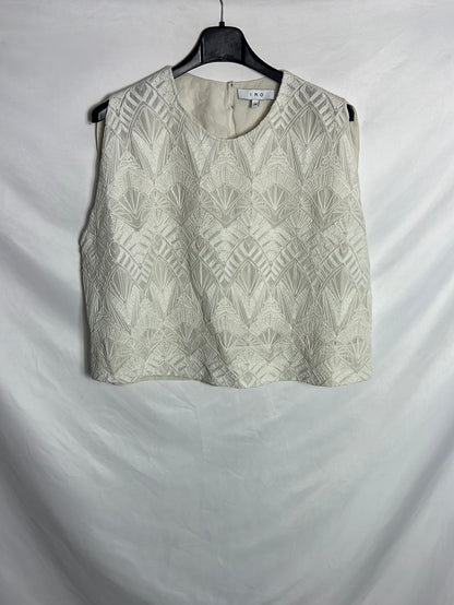 Top beige bordados doble textura De sisa a sisa 60cm, largo 51cm. Hombros 39cm
