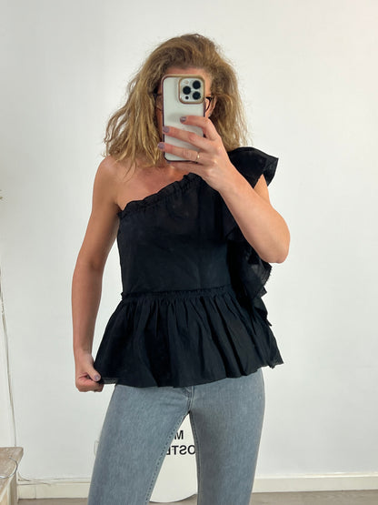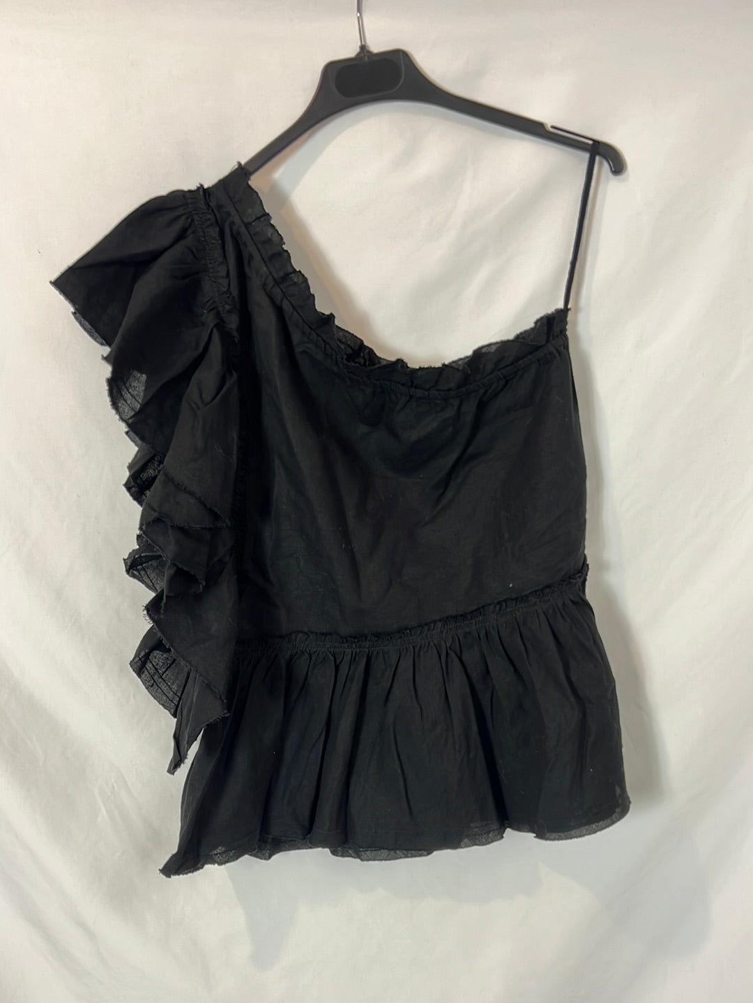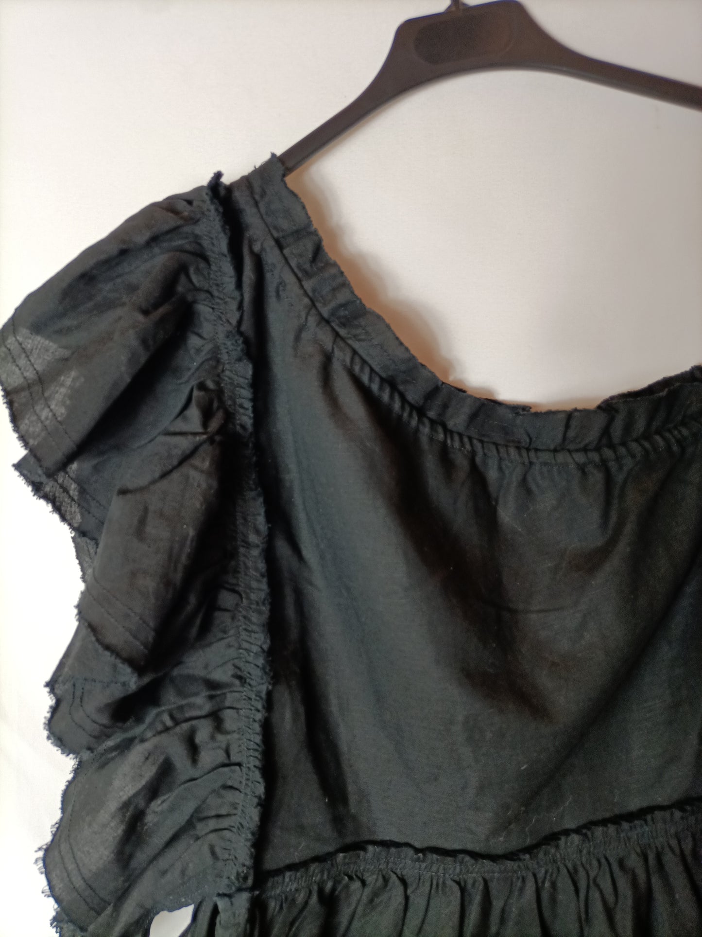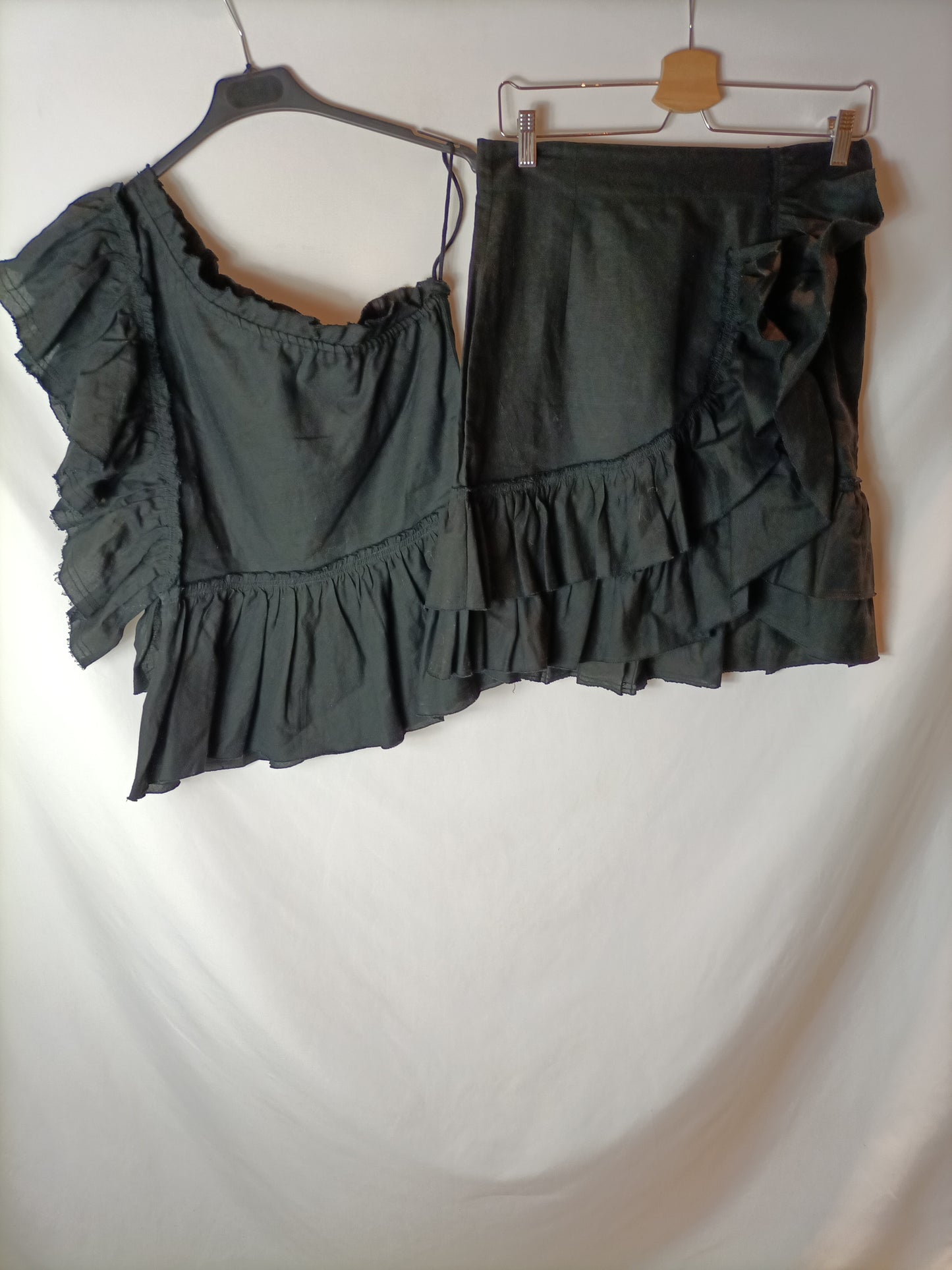 Total look top y falda volante negro. 55%lino, 45% algodón. de sisa a sisa 46cm, largo 61