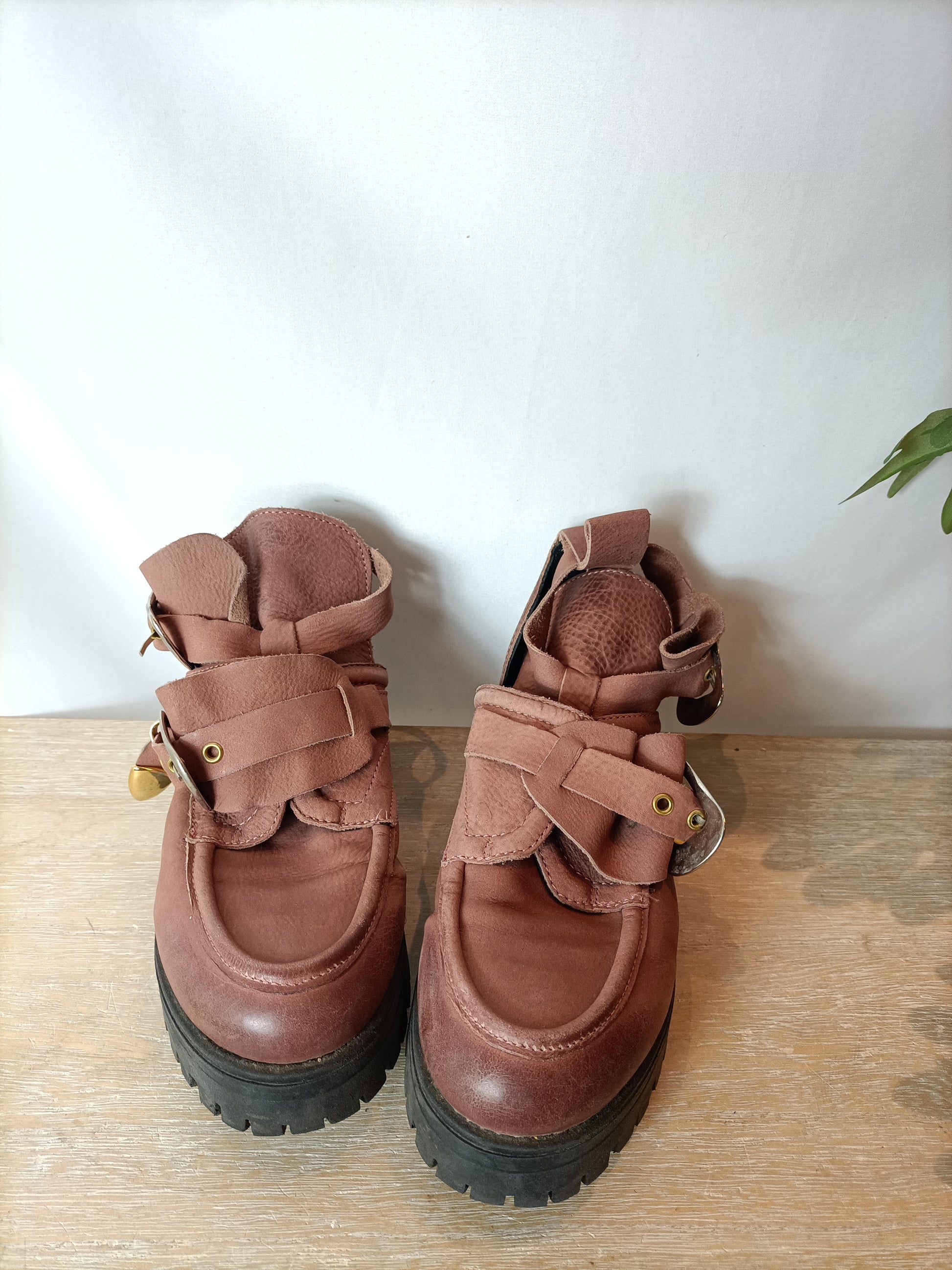 Zapatos plataforma y hebillas color malva. Tara: tienen alguna manchita