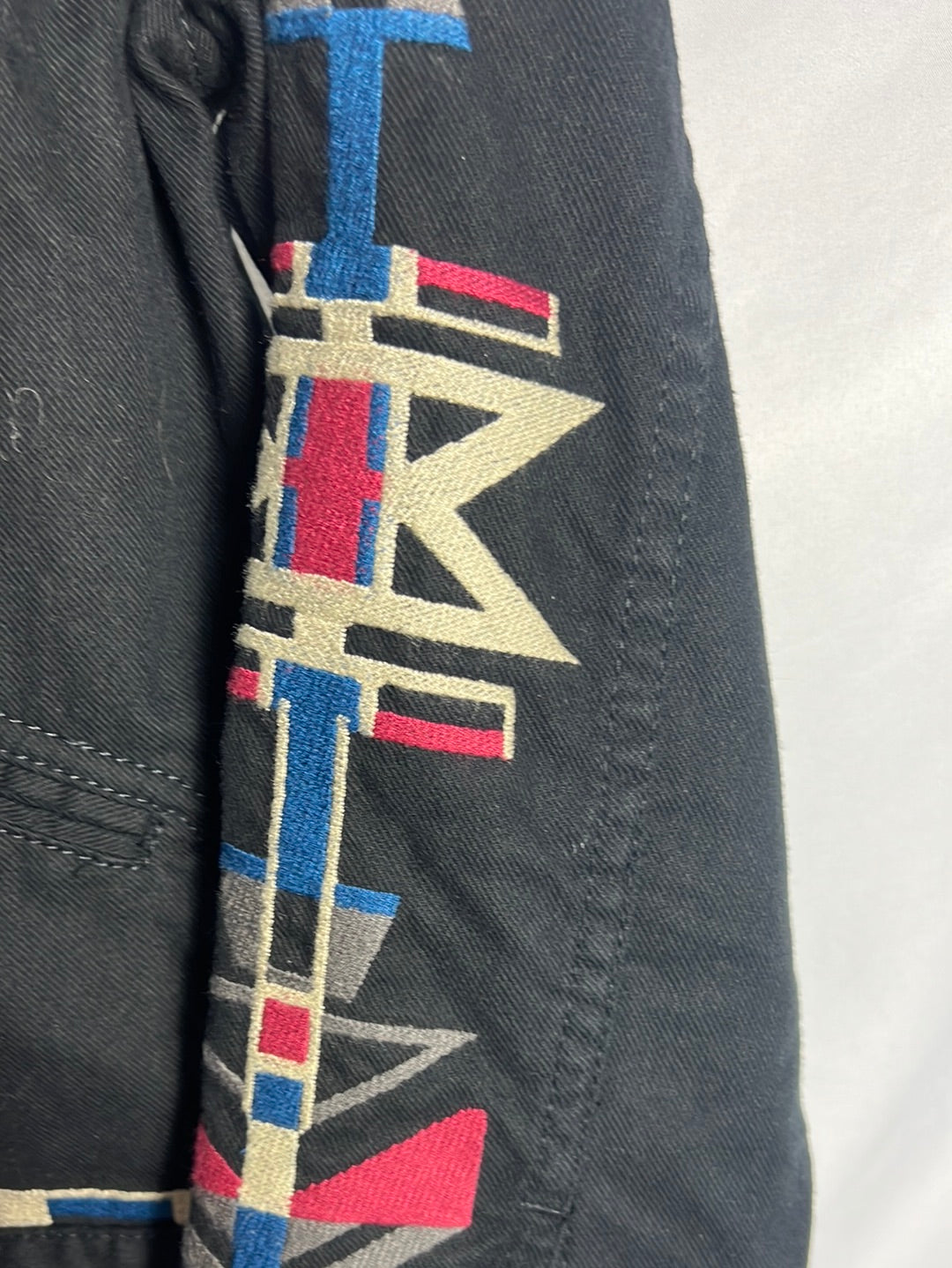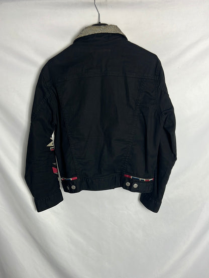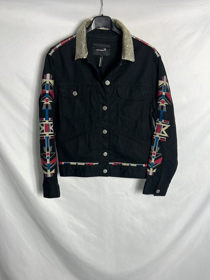 Chaqueta denim bordados y cuello mini lentejuelas. Hombros 40cm, largo 51cm