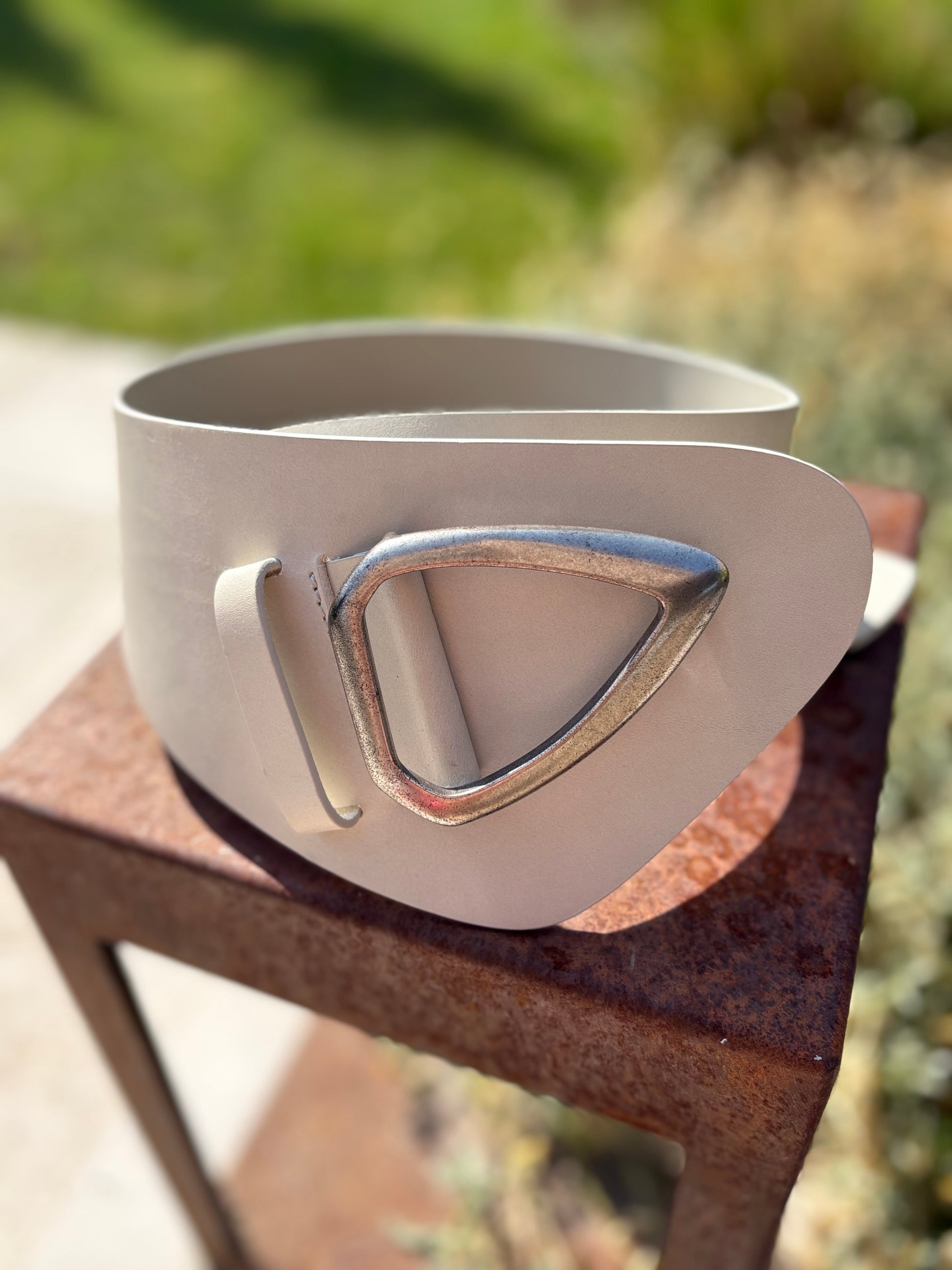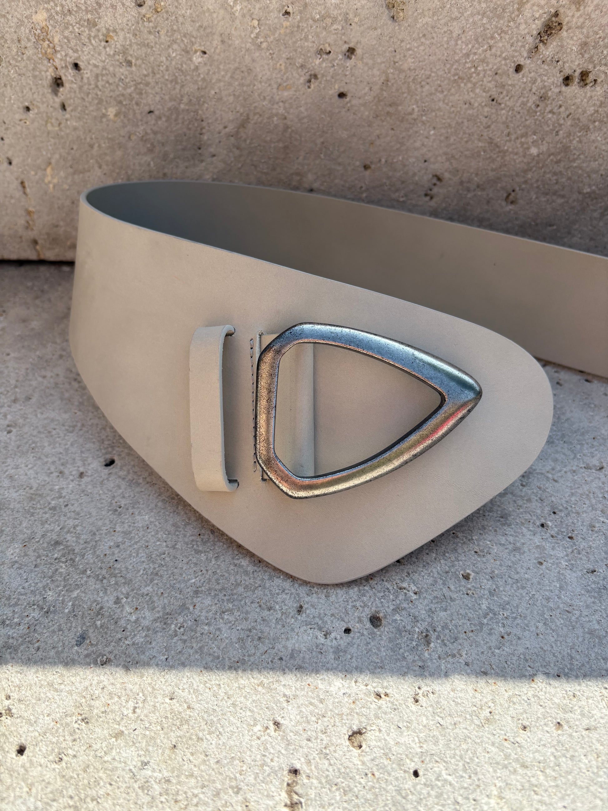 ISABEL MARANT. Cinturón fajín piel color piedra. T S