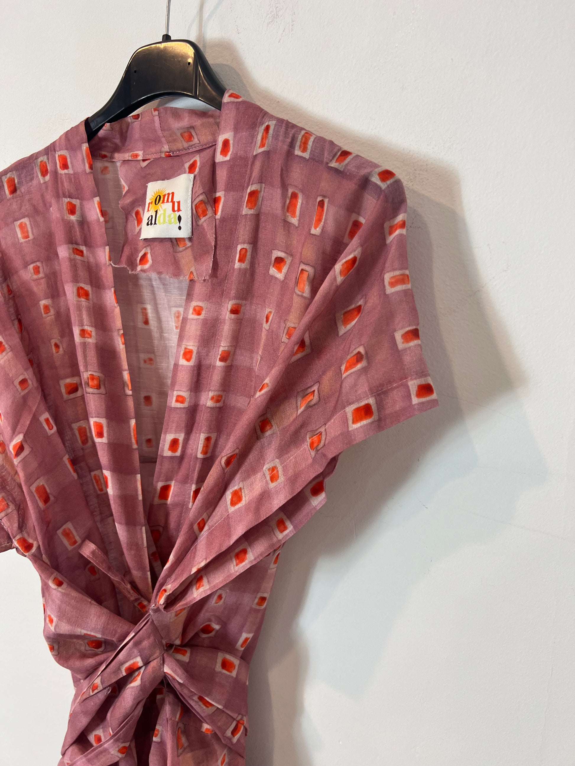 vestidor rosa estampado. Estilo cruzado. De sisa a sisa cm largo 125 cm