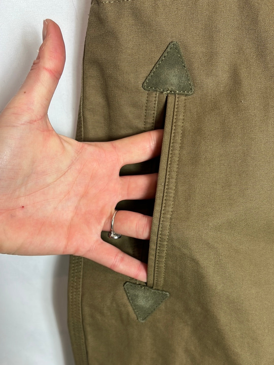 Pantalón verde caqui detalle bolsillos. Cintura 37cm, largo 94cm