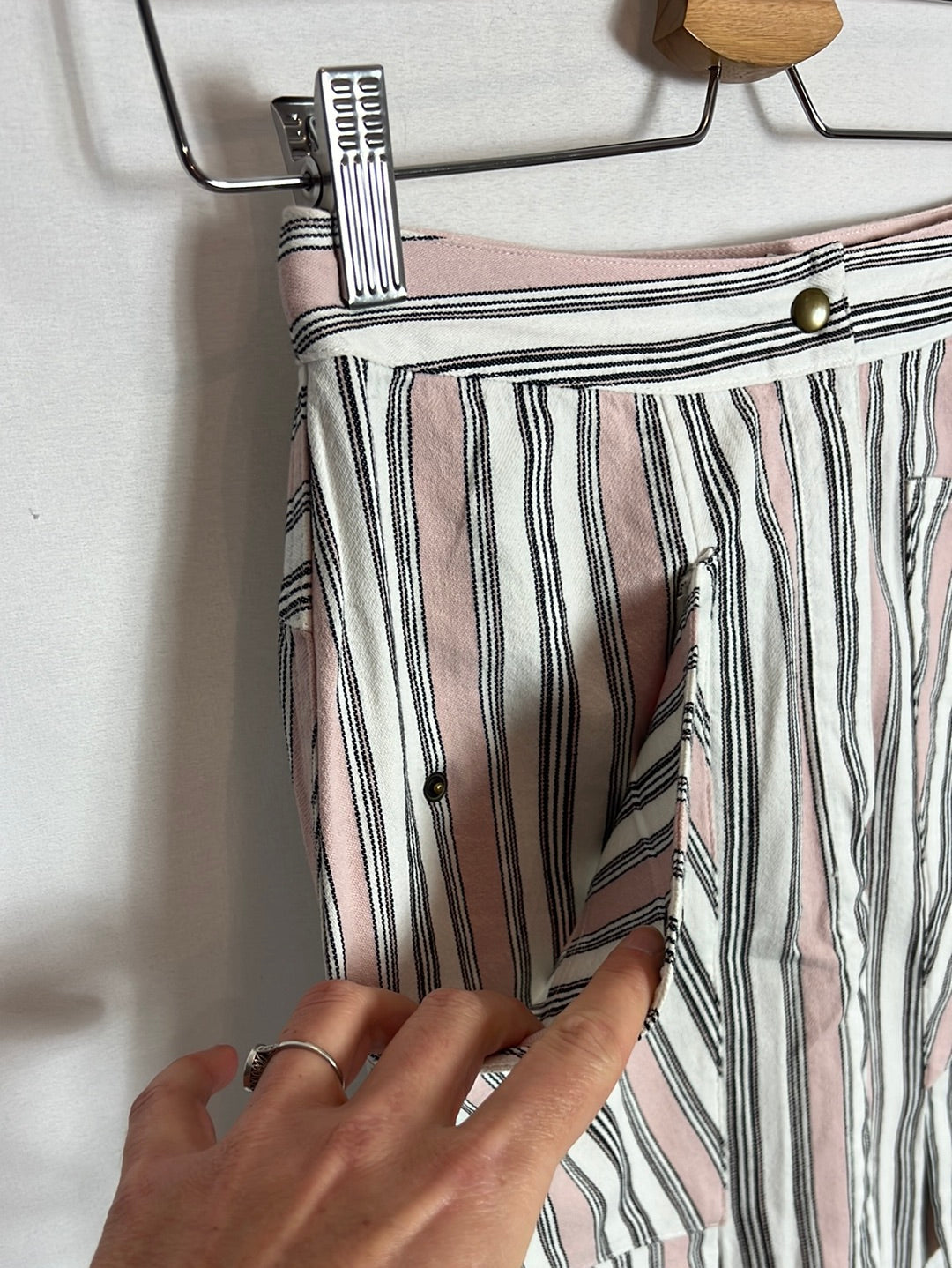 Falda corta denim rayas negras y rosas 100% algodón. No elastica. Cintura 34cm, largo 42cm