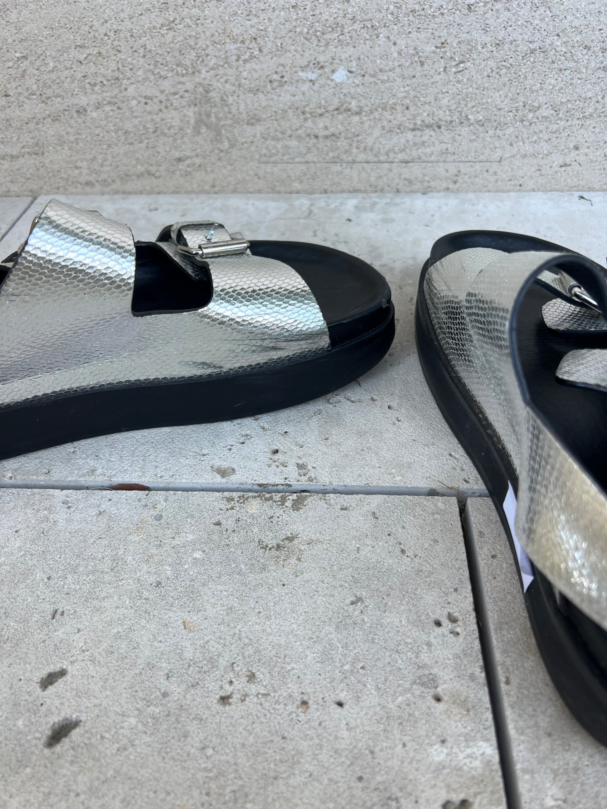 ISABEL MARANT. Sandalia hebillas plateada. T 39