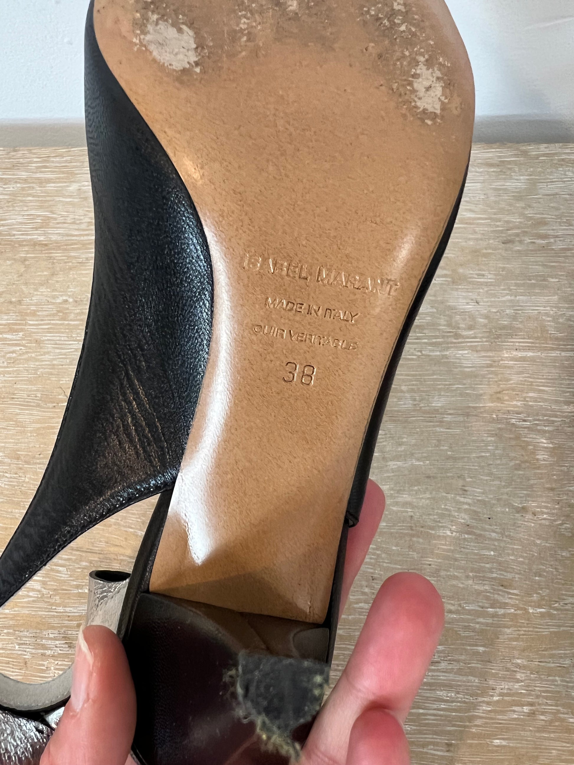 ISABEL MARANT. Stiletos negros lazada plateada T.38