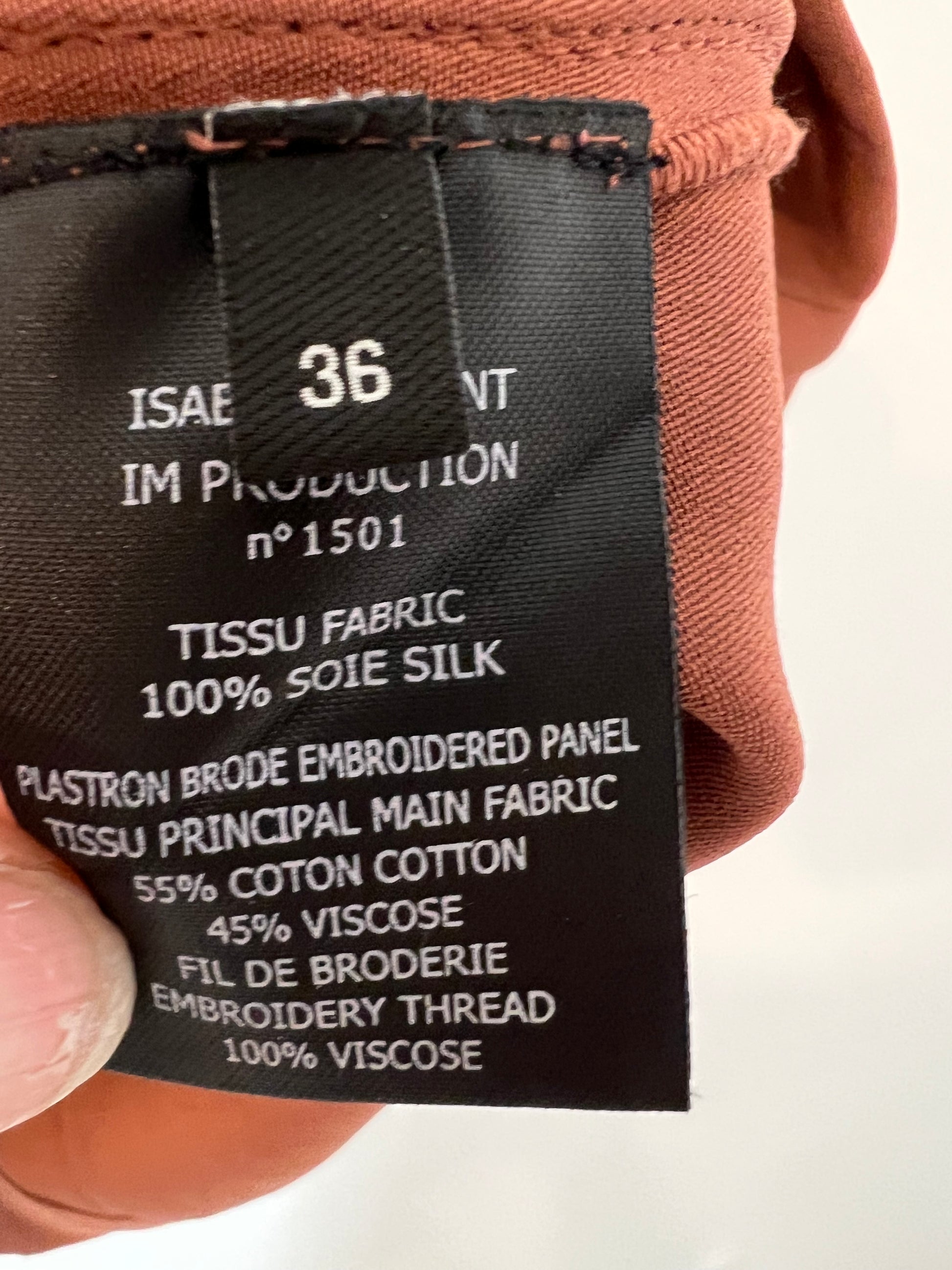 ISABEL MARANT. top marrón seda bordado seda T.36