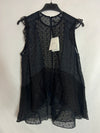 NUEVO CON ETIQUETA. 100% seda. Top plumeti semitransparente negro asimétrico