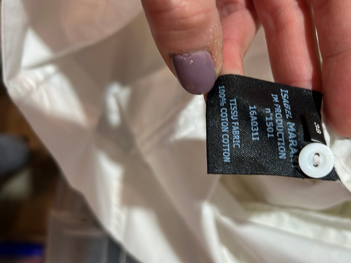 ISABEL MARANT. Vestido blanco bordado manga larga. T 38