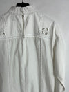 Vestido blanco bordado manga larga .Tejido no elástico. 100% algodón. Tiene bolsillos. Hombros 47cm, de duda a sisa 55cm, largo 100 cm