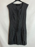 Vestido corto 100% lana gris. Cremallera frontal y bolsillos