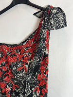 Vestido corto troquelado asimétrico seda y algodón. Largo 85 cm y cintura 34cm