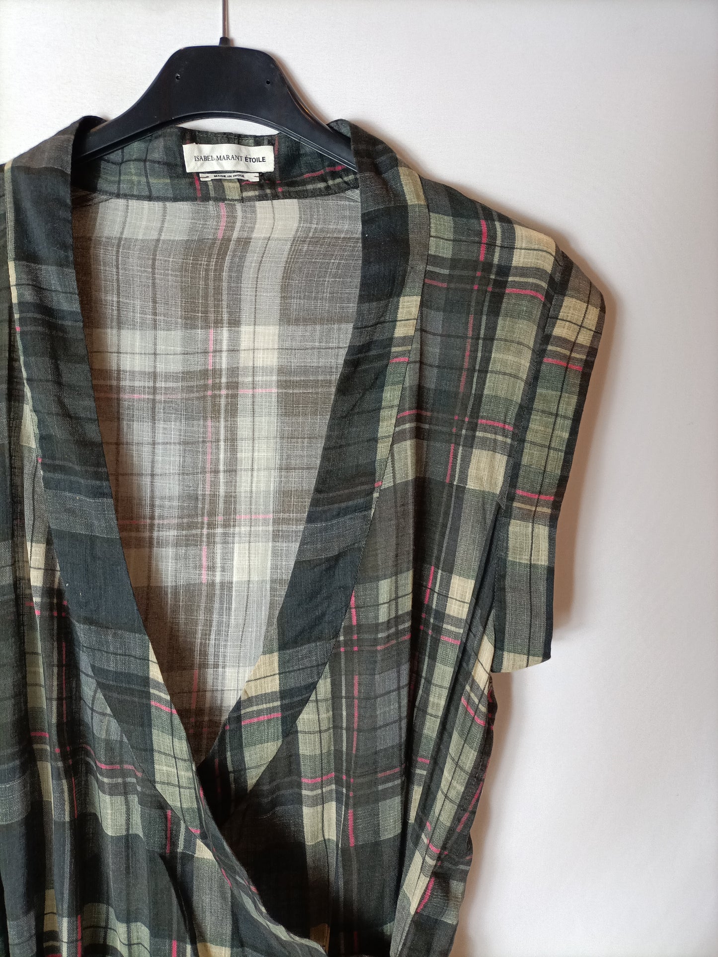 ISABEL MARANT. Vestido cruzado cuadros . T 38