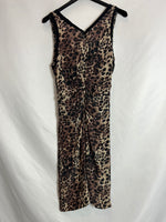 100% seda. Vestido seda animal print. Cremallera en la espalda. Largo 98 cm