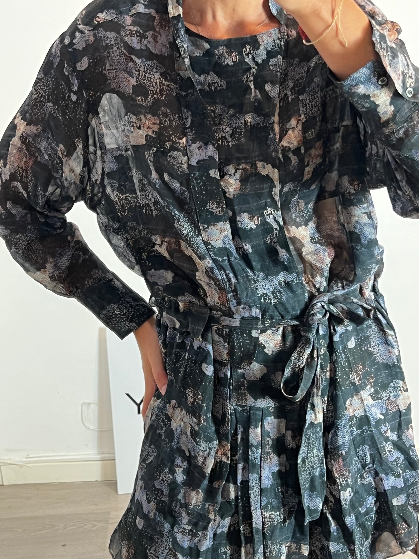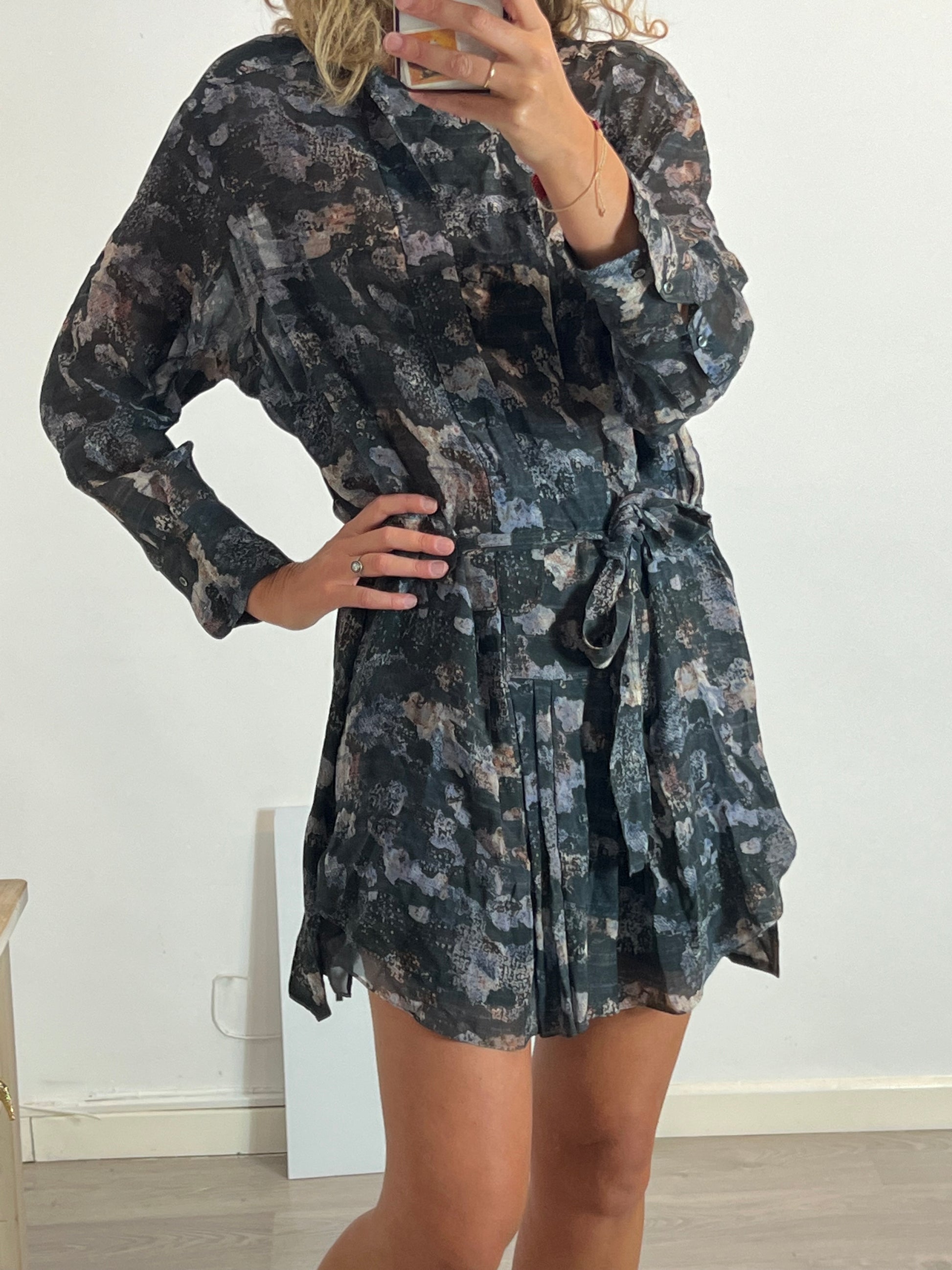 ISABEL MARANT . Vestido seda gris estampado. T 34(S/M)
