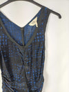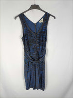 Isabel Marant. Xs. Vestido corto azul negro con detalle fruncido en cintura y escote. Se abrocha con cremallera. No elástica. De sisa a sisa 41 cm largo 94 cm