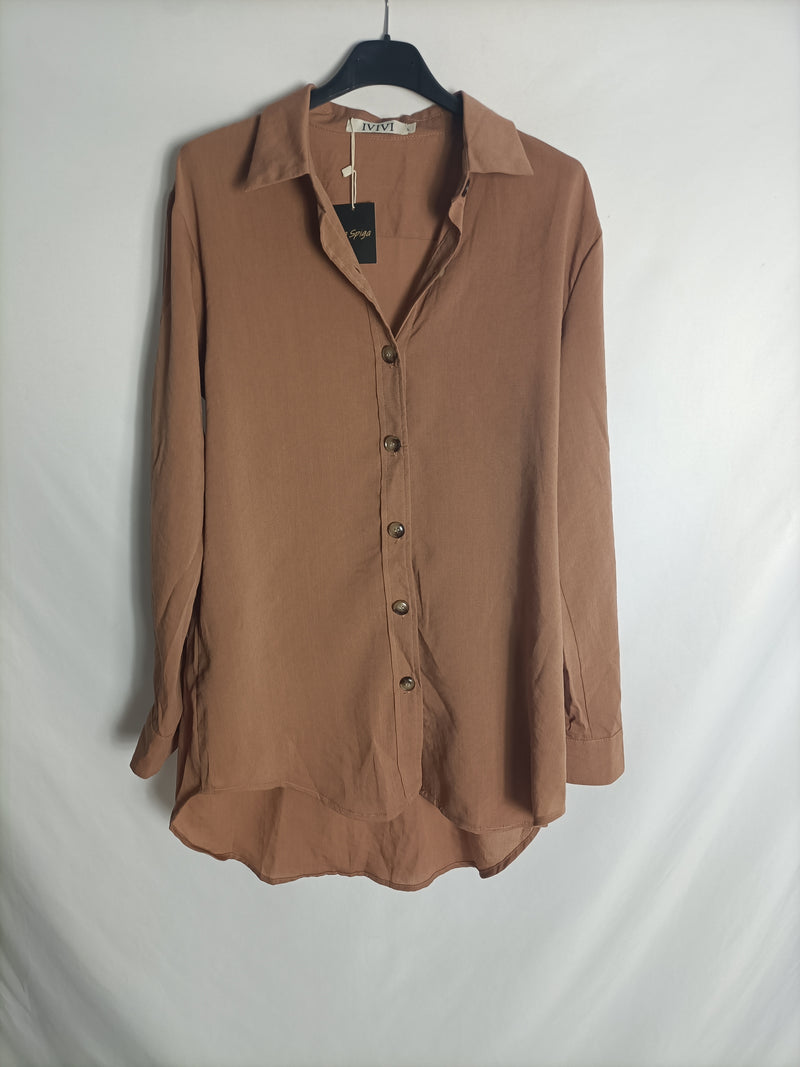 NUEVO CON ETIQUETA. blusa camel abotonada fluida.
