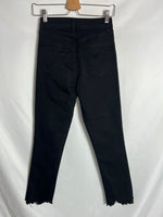 Pantalones negros denim cropped. Tejido elástico. Cintura 34 cm
