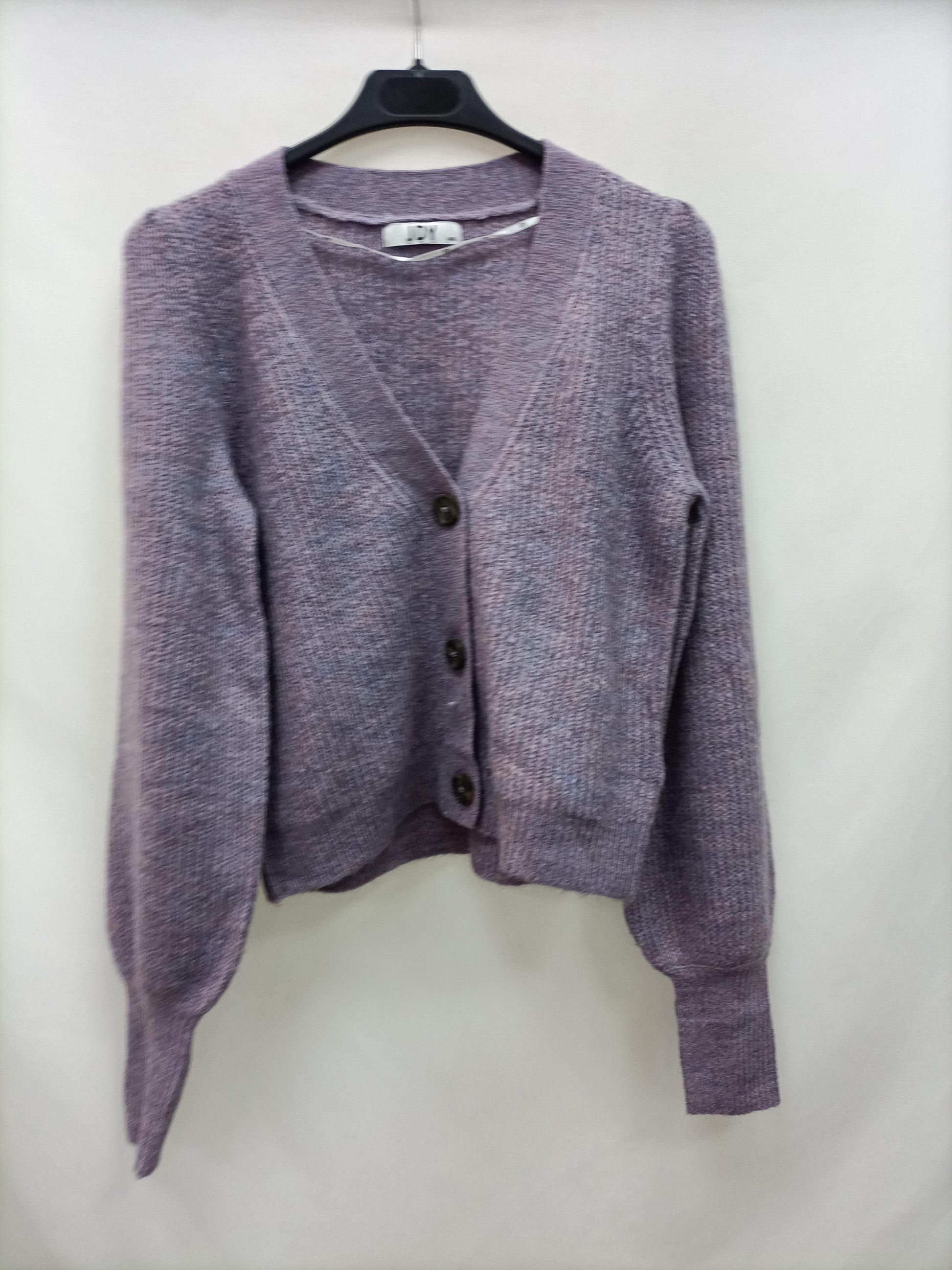 Cárdigan corto moradoo estilo jaspeado. Largo 50 cm