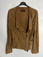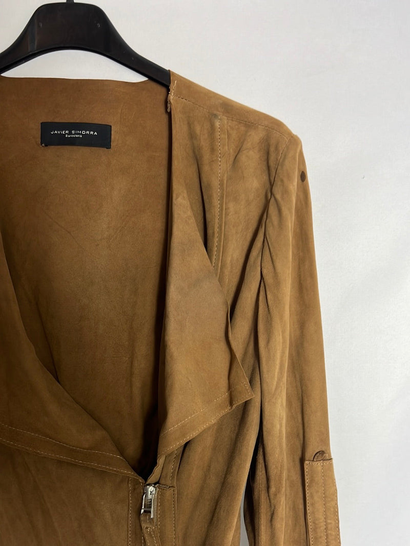 JAVIER SIMORRA. Chaqueta piel marrón cremallera. T 38 (tara)