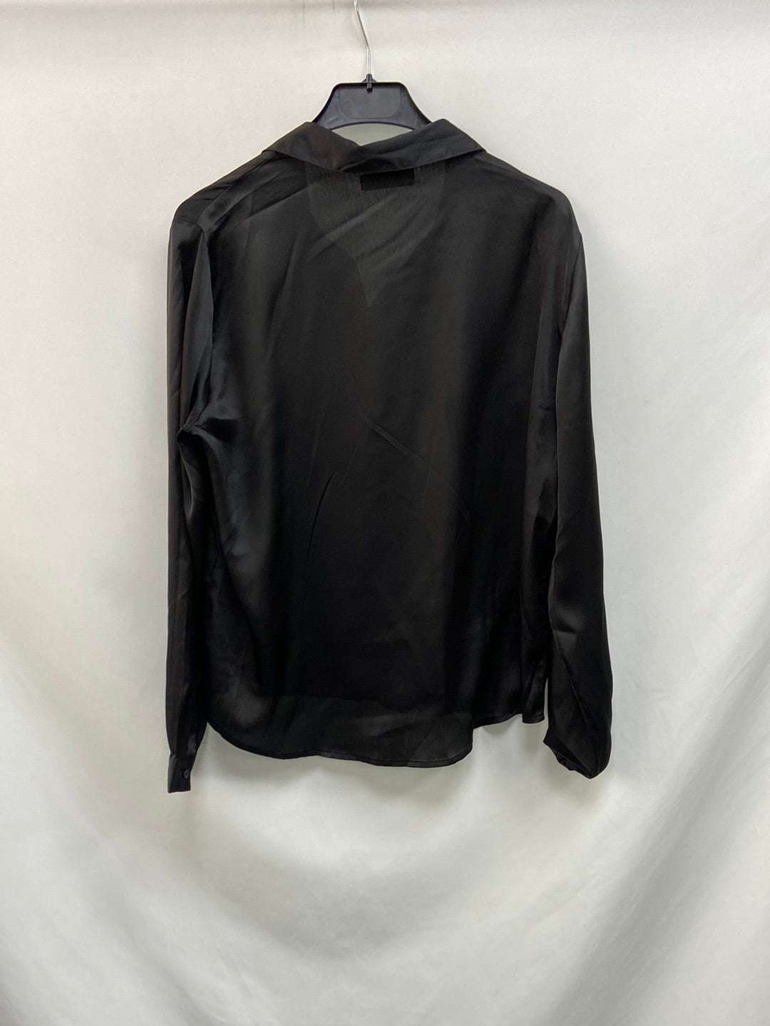 Blusa negra fluida satinada.