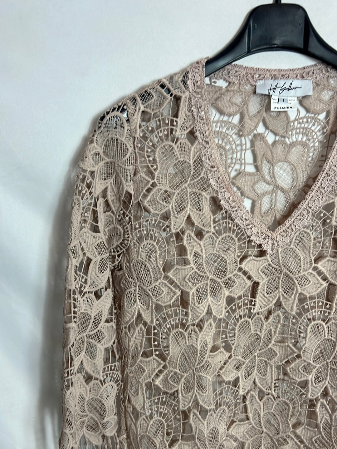 JEFF GALLANO. Top rosa palo encaje. T S
