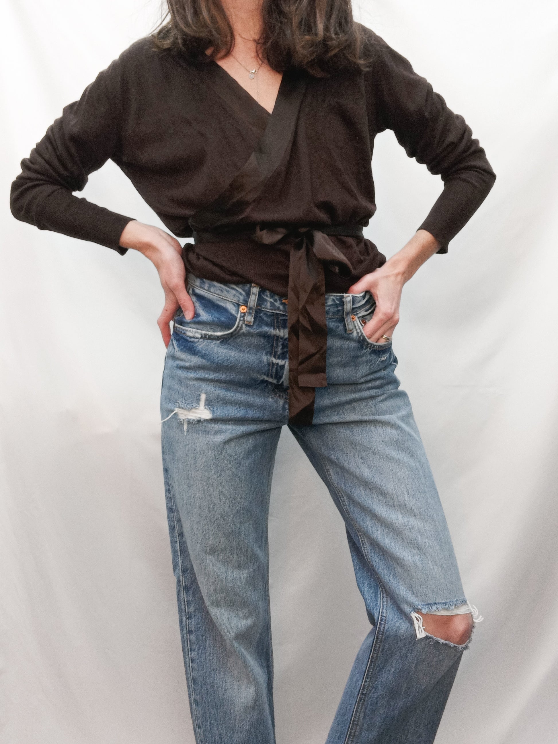 ADOLFO DOMINGUEZ. Jersey cruzado con lazada T.l