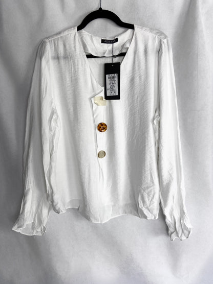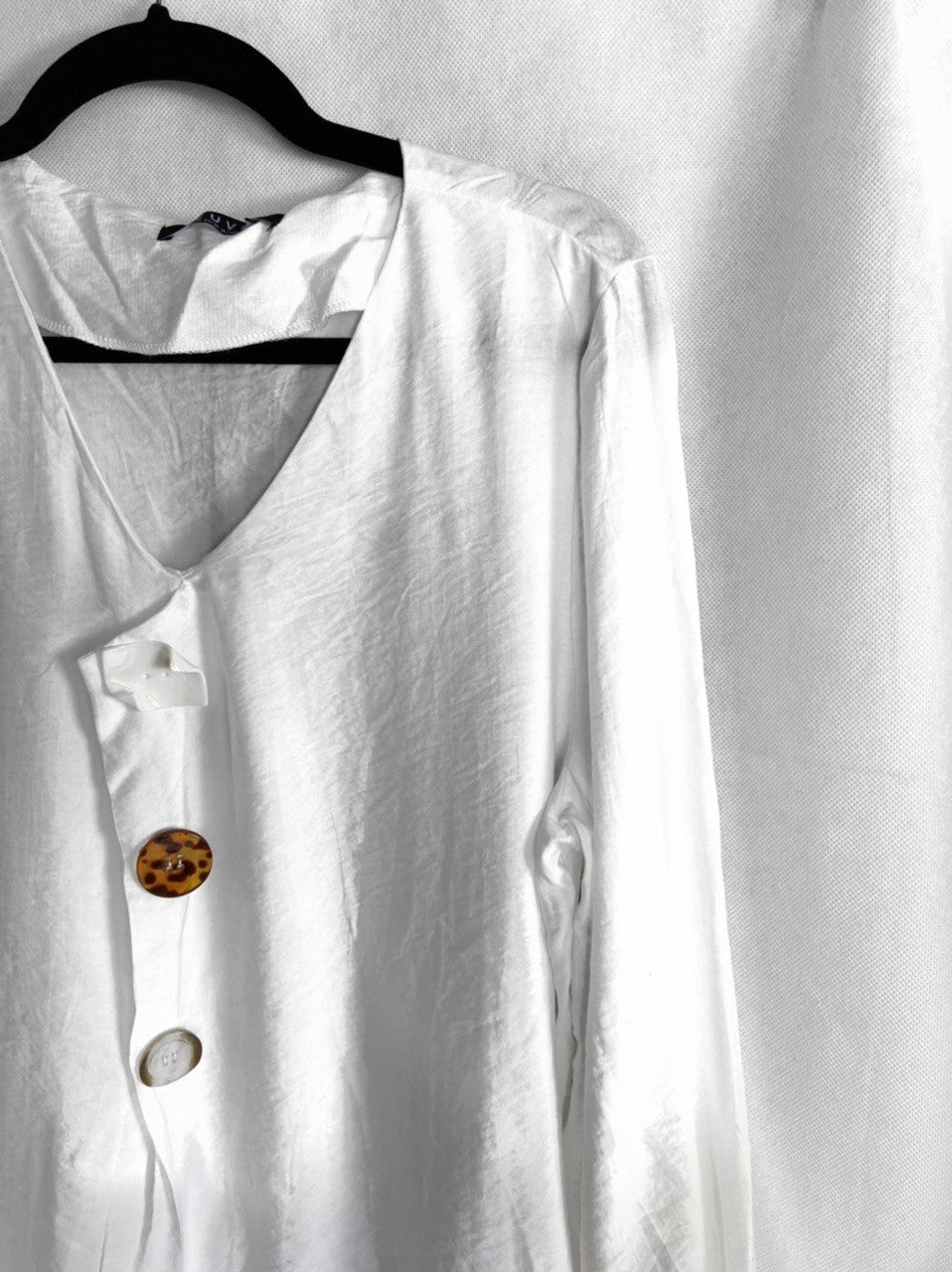 Blusa blanca fluida con botones diferentes, estilo oversized. NUEVA CON ETIQUETA
