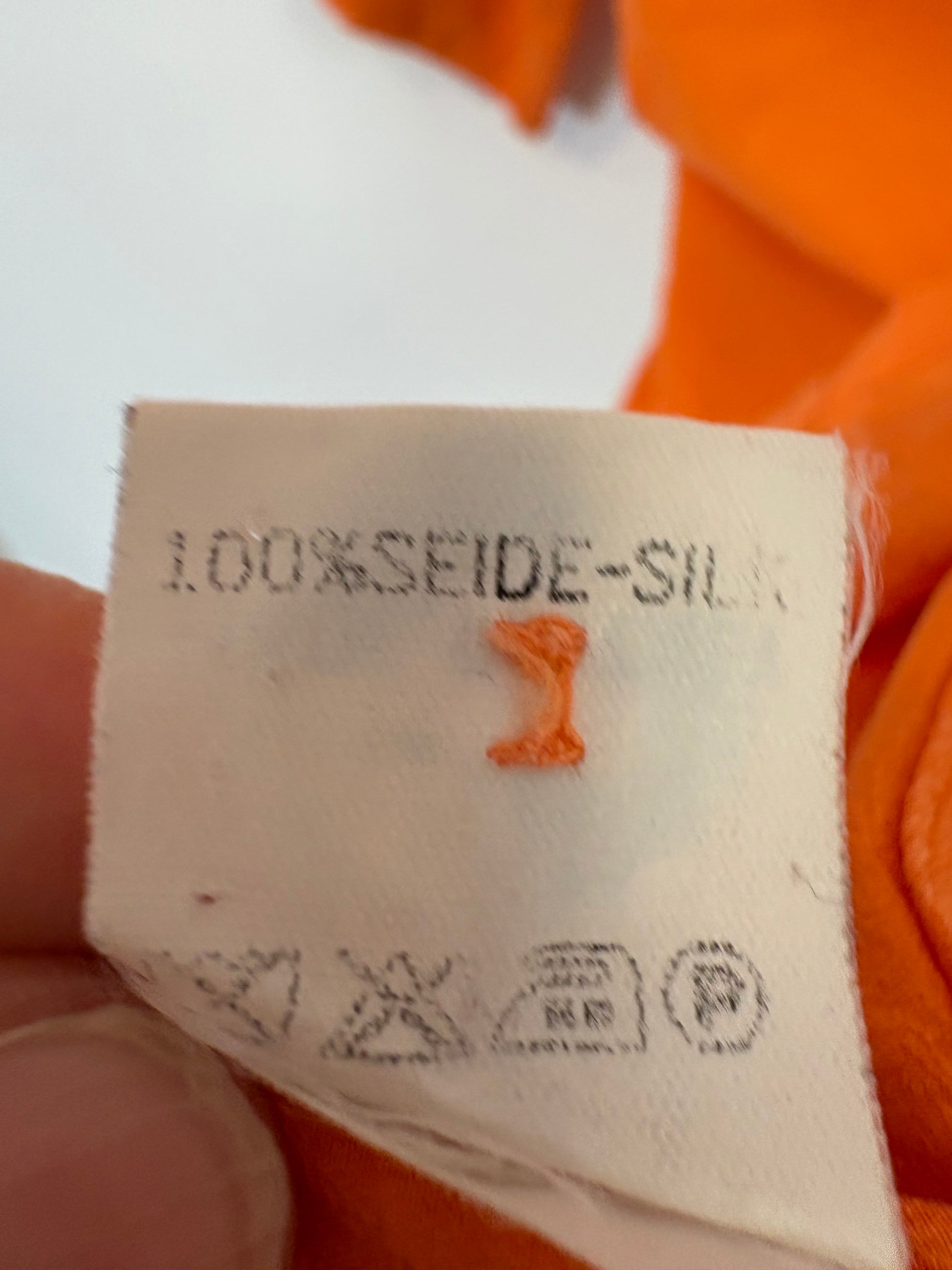 100% seda. Espalda 54 cm , largo 61 cm , No Elástica